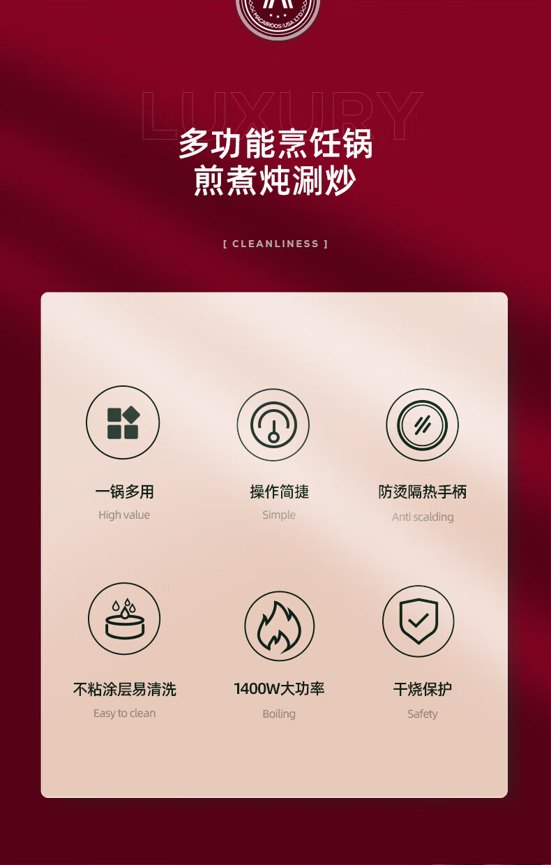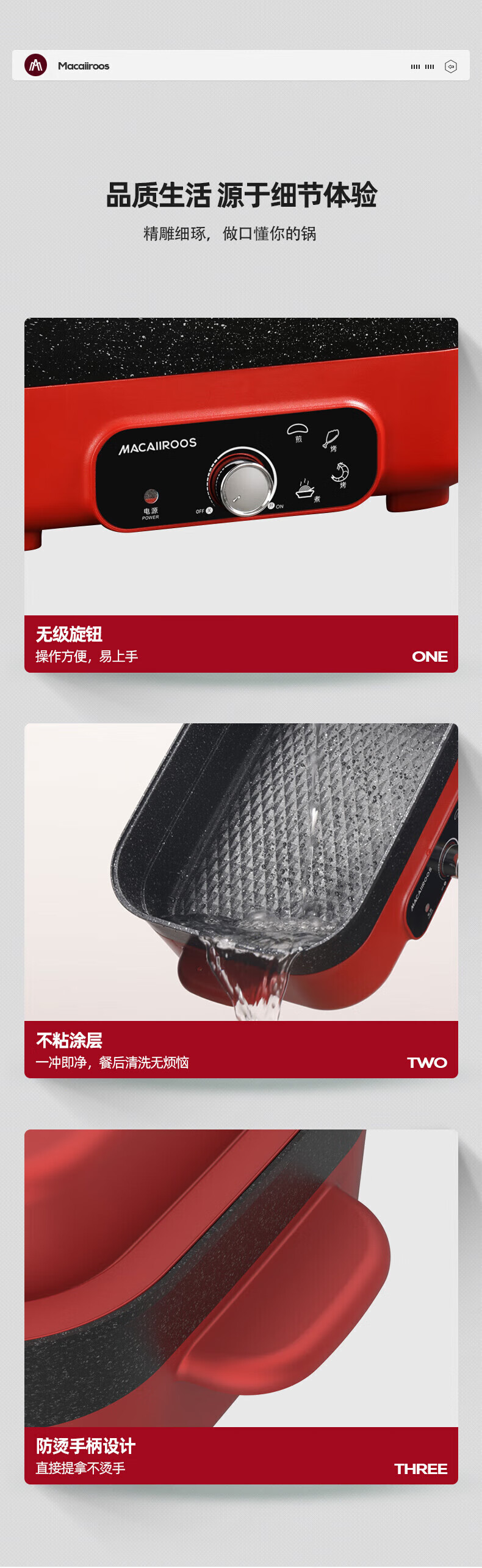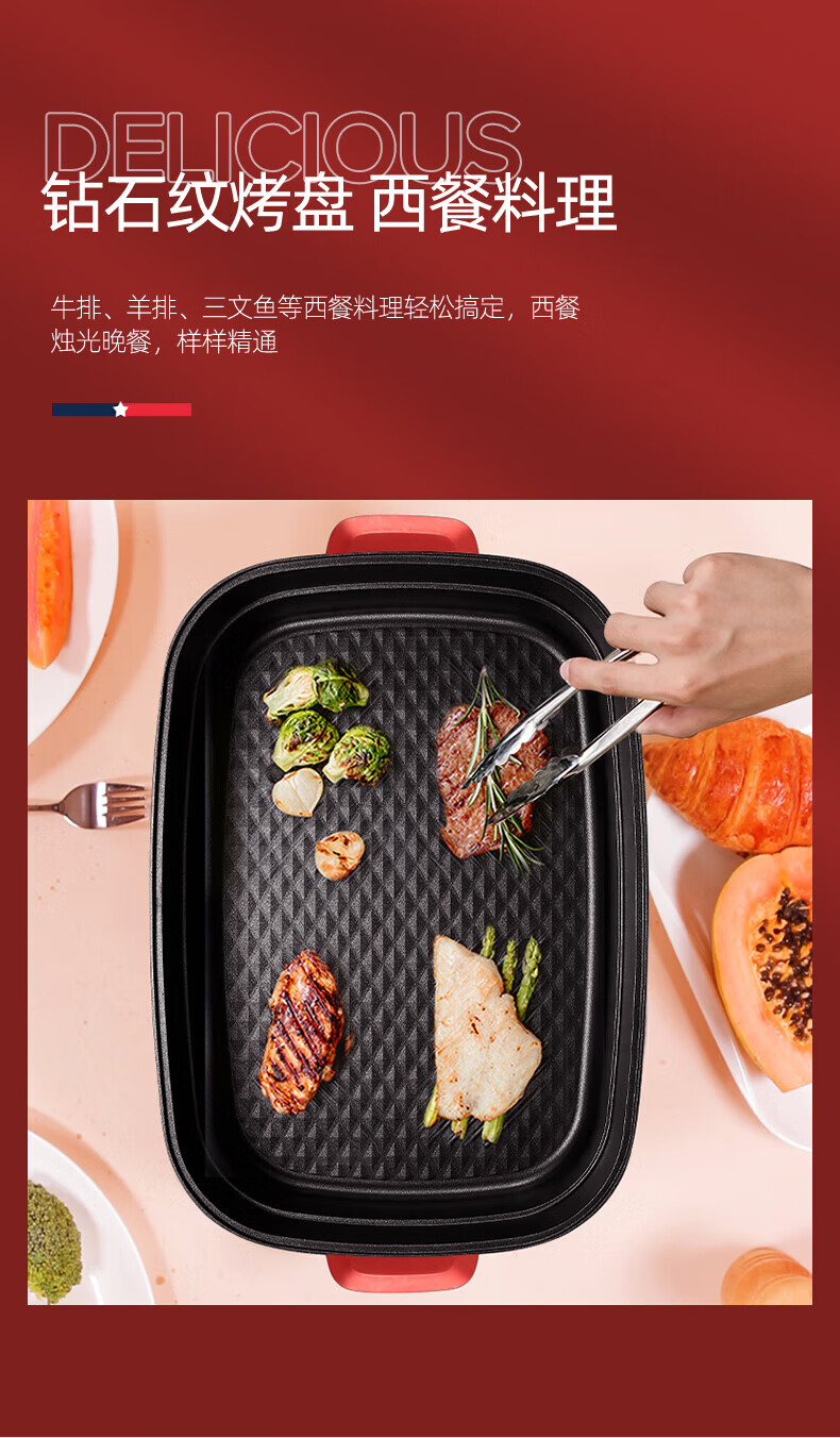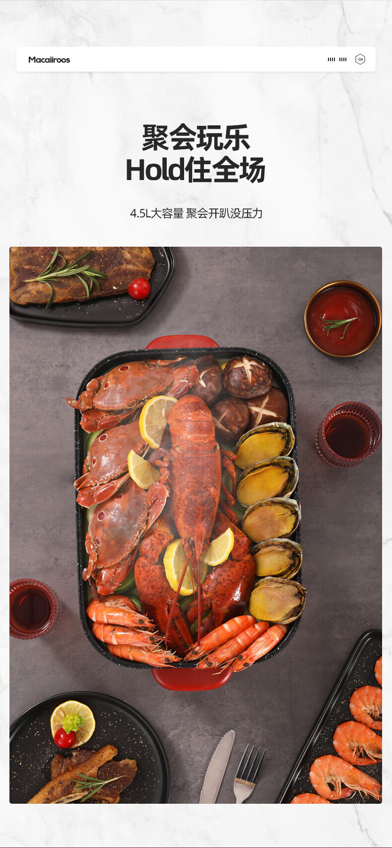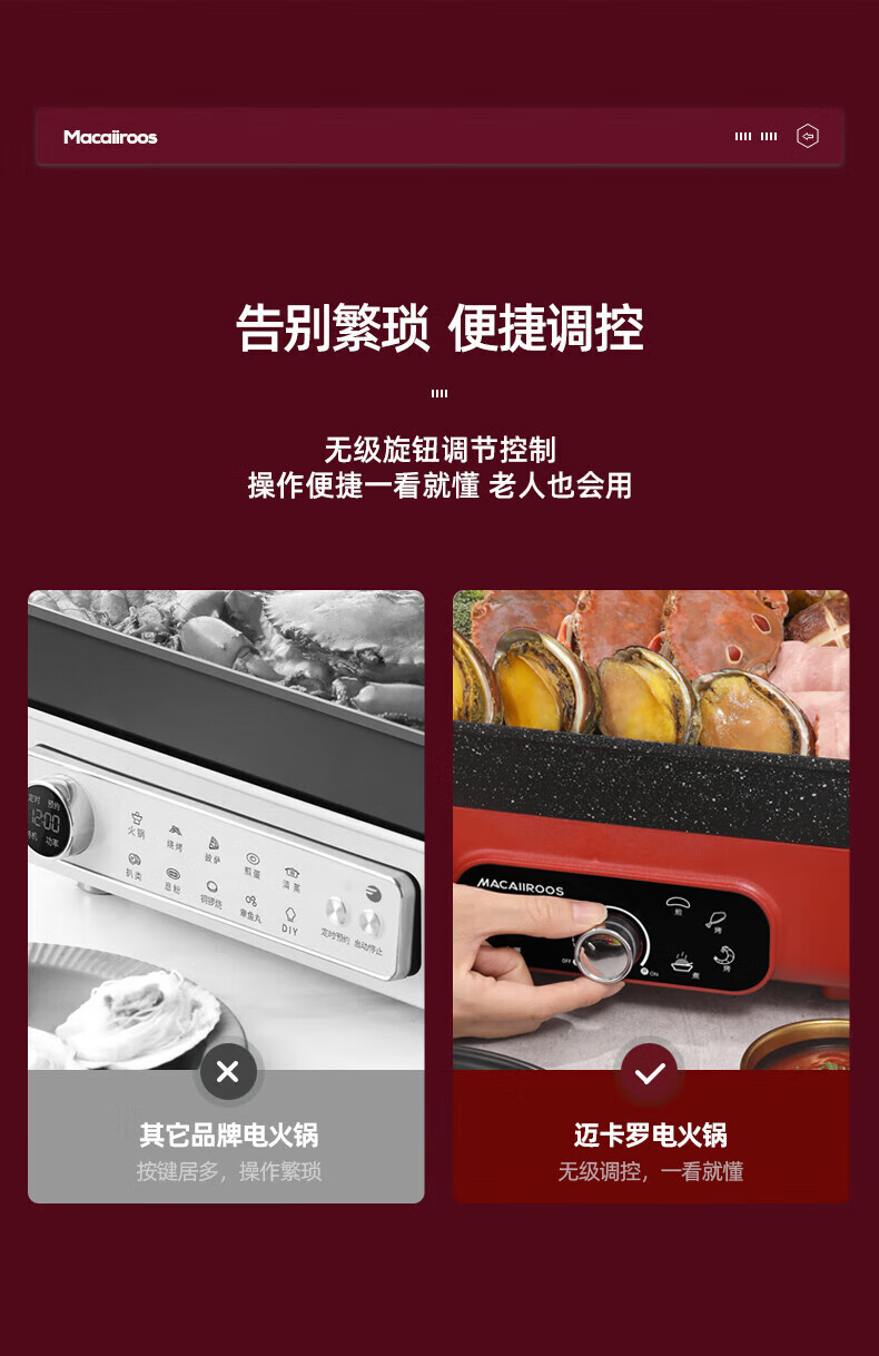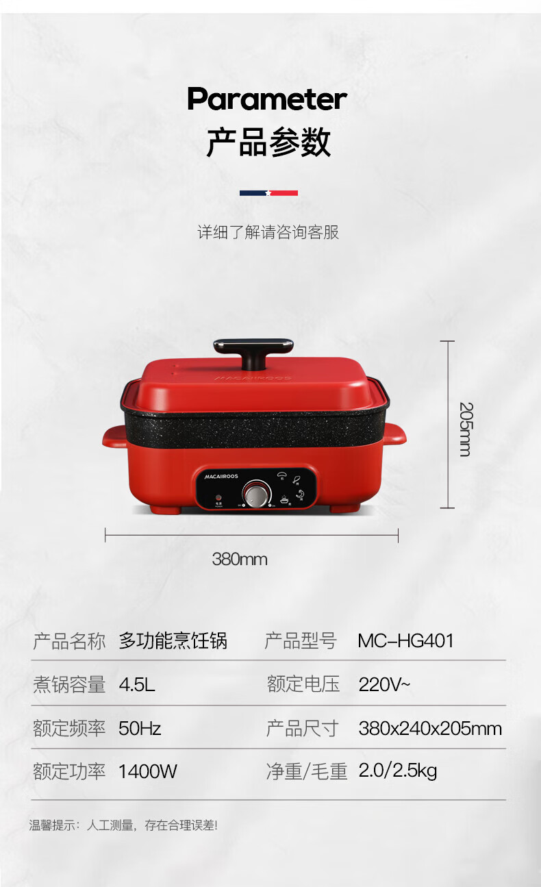 【小家电】迈卡罗MC-HG401多功能烹饪锅 煎煮涮焖炖一机多能 无级温控电火锅HF