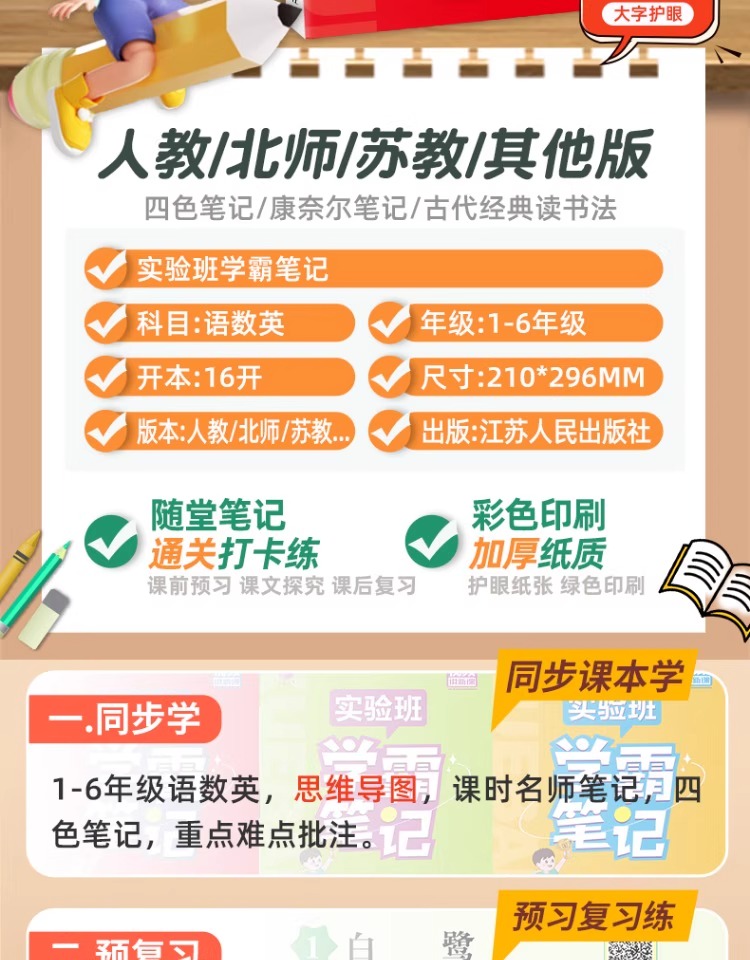 2025秋实验班笔记一二三四五六年级上下册语文笔记数学笔记英语笔记人教版外研版北师大版