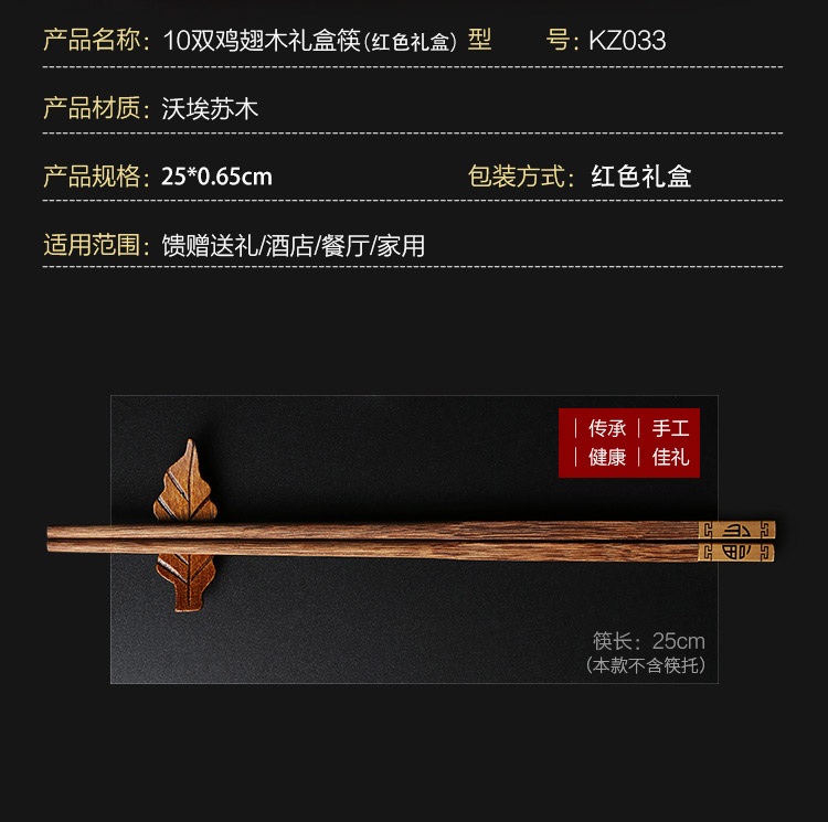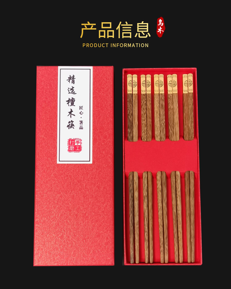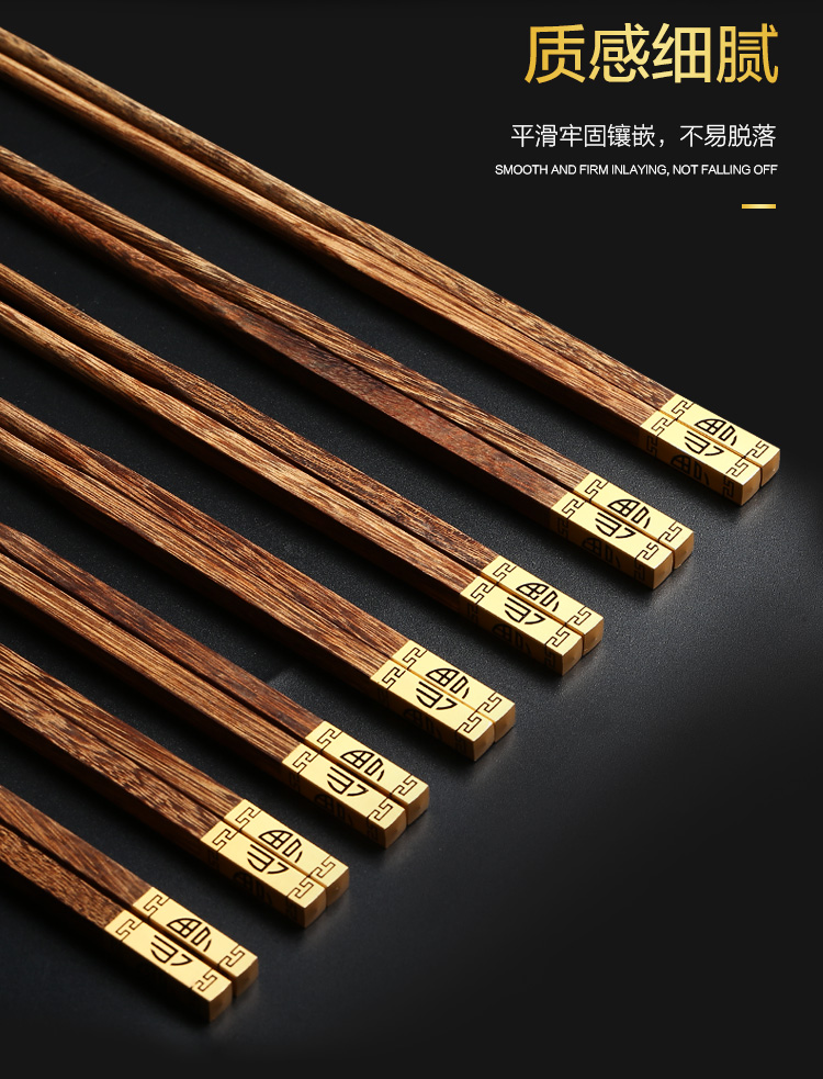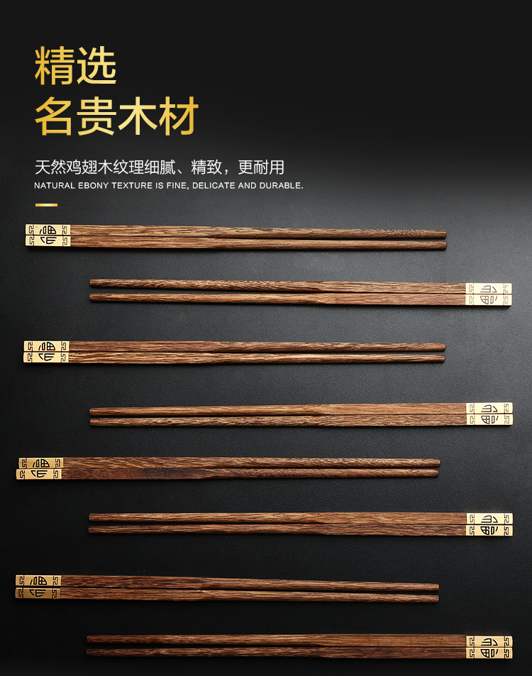 【已下架】积分换购 | 达乐丰 金福红檀木/鸡翅木金头礼品筷子10双装[福利品]