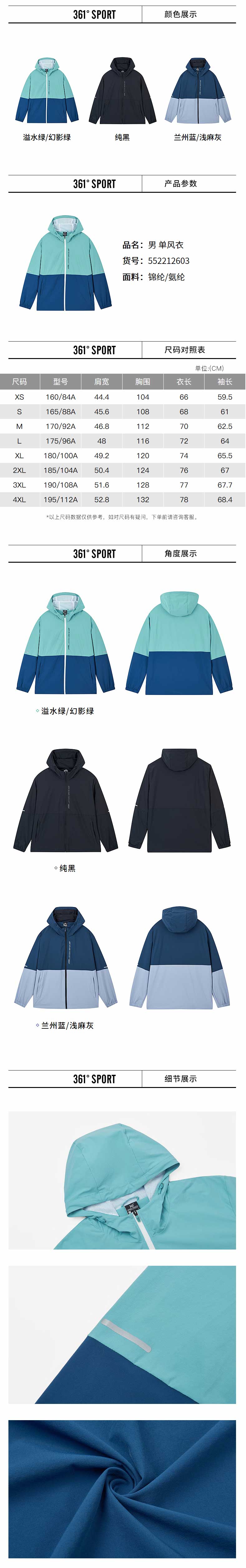 361度男装单风衣连帽时尚2022春装学生上衣常规运动外套552212603