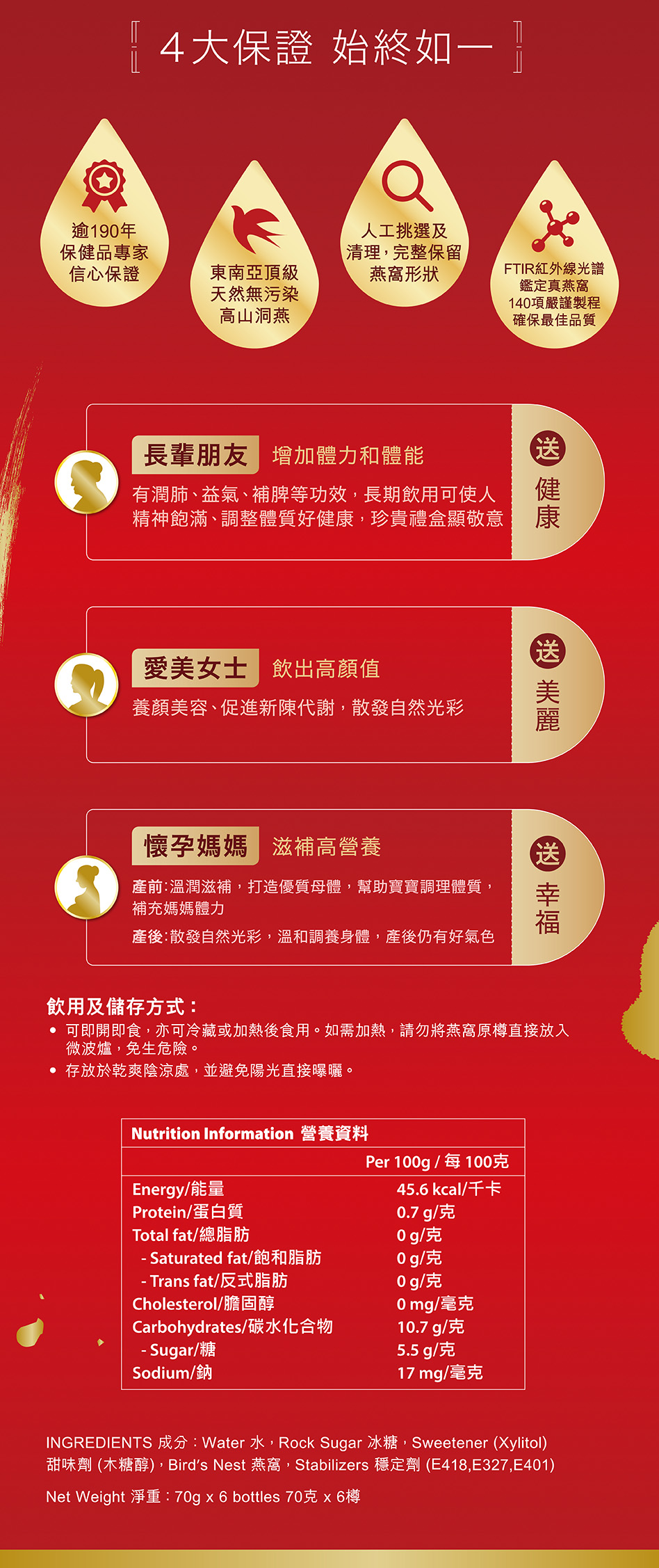 白兰氏Brand‘s 顶级官燕木糖醇燕窝营养品 70gX6瓶装