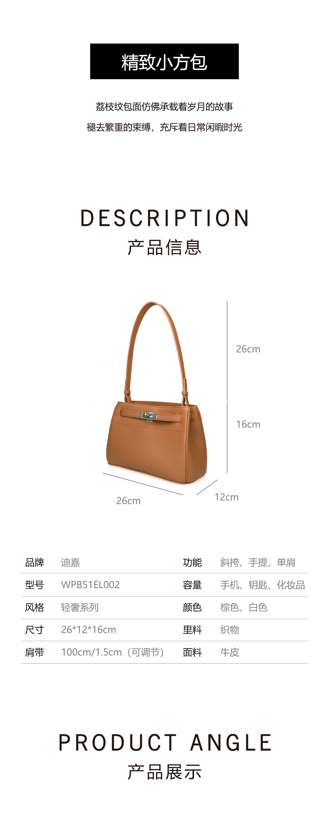 豪麟名鞋迪嘉女包手袋牛皮革WPB51EL002棕色