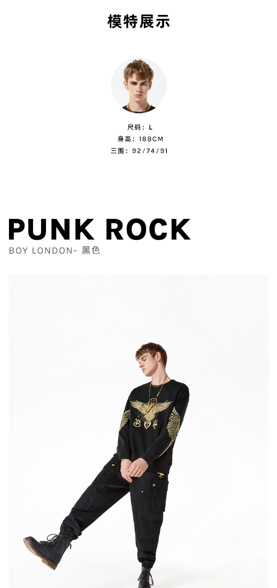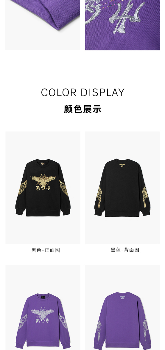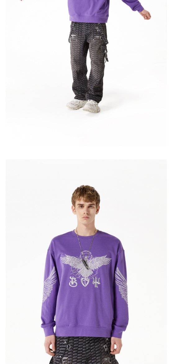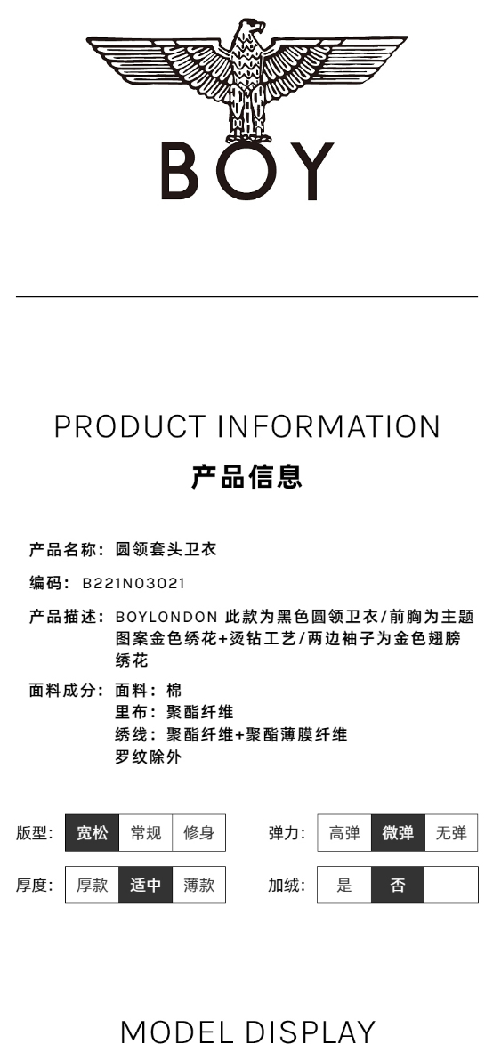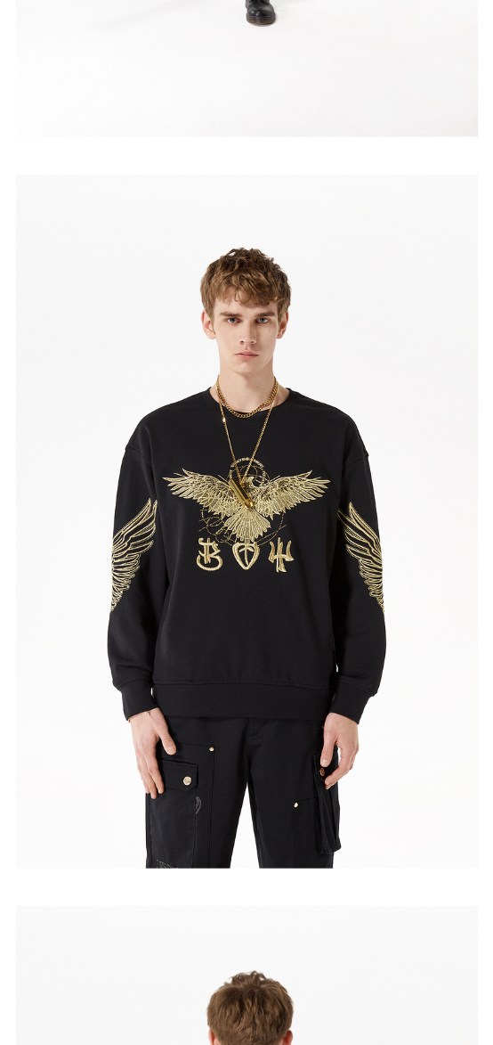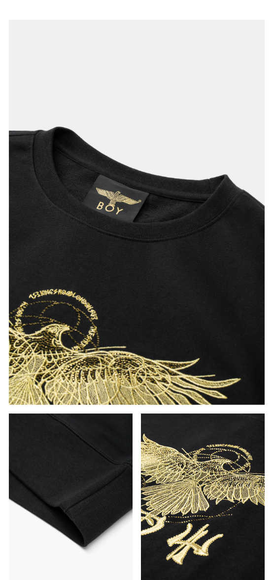 BOY卫衣男女同款22春夏新品金色老鹰翅膀绣花长袖衫B221N0302102