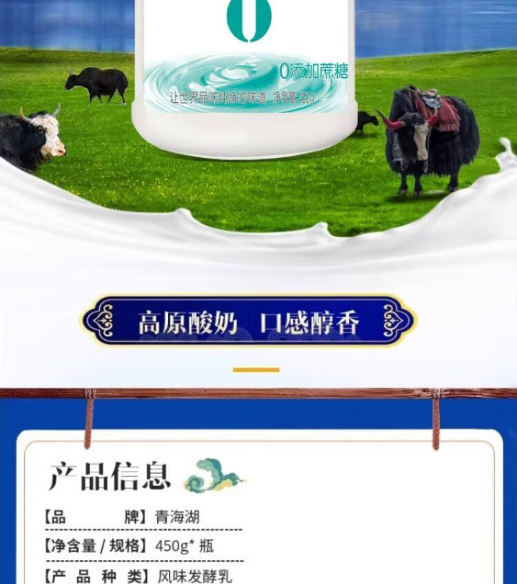 青海湖藏酸奶0蔗糖450g/瓶