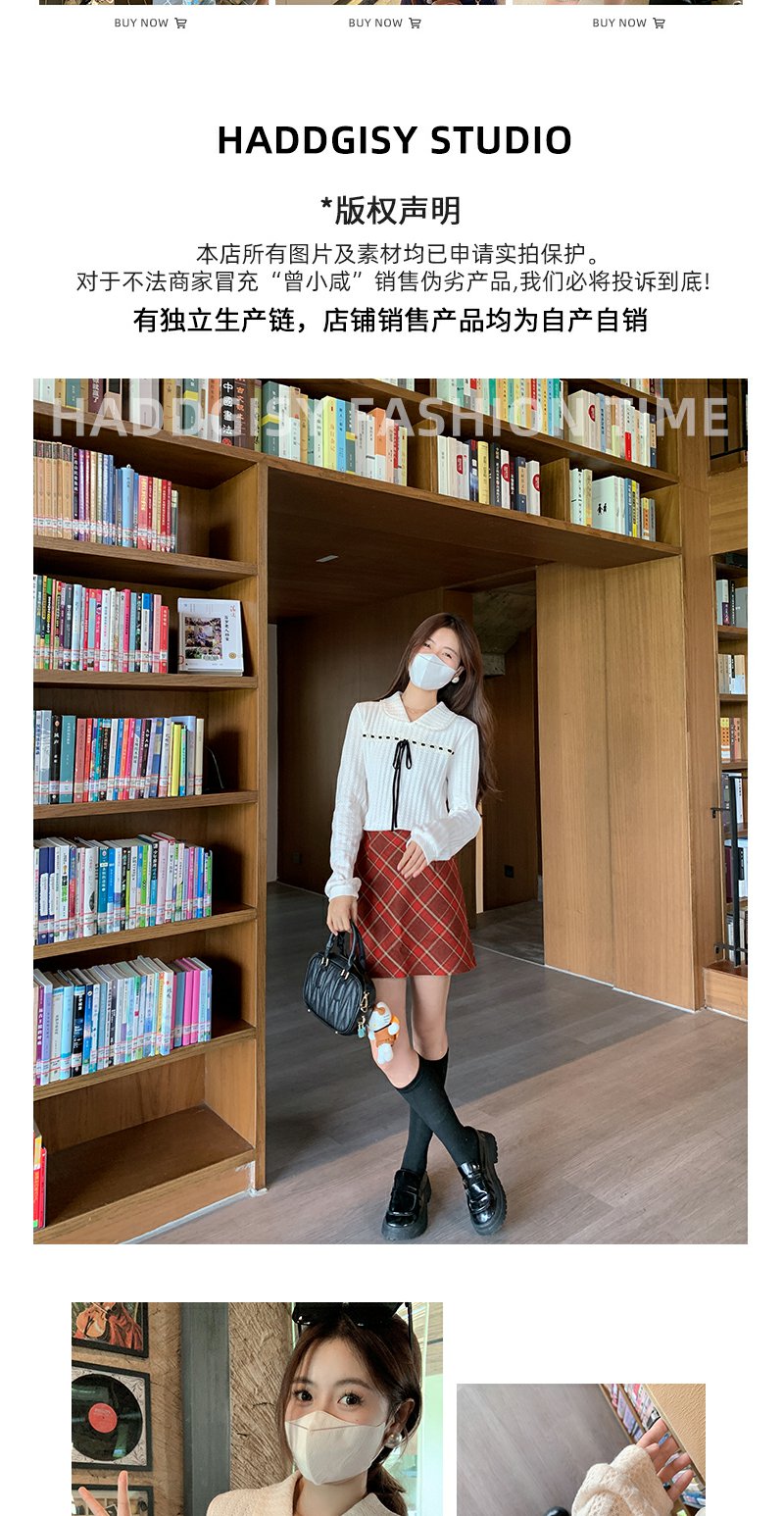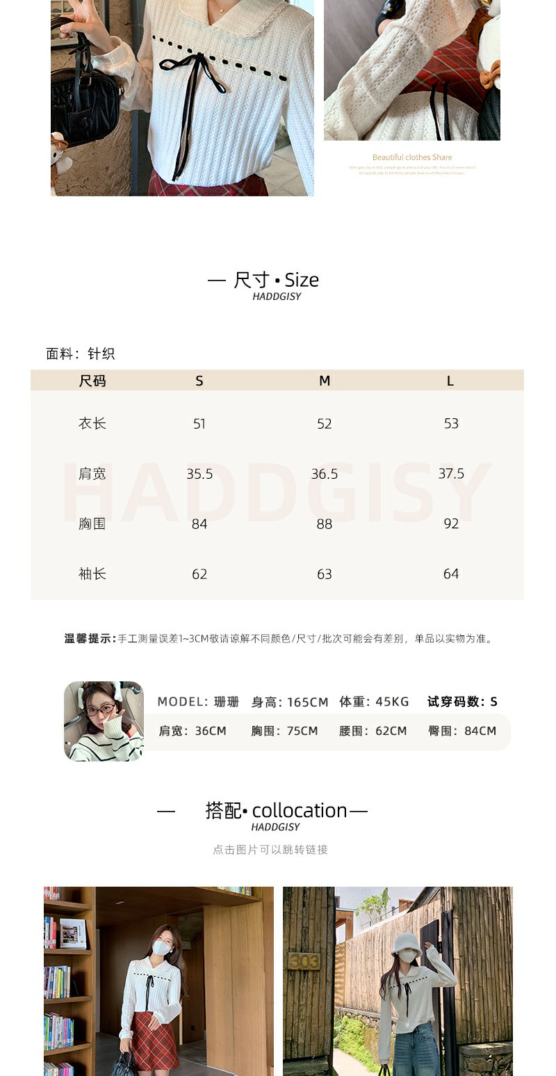<曾小咸推荐>蝴蝶结设计感娃娃领针织衫上衣 日常139.99 立减70 秒杀69.99!!