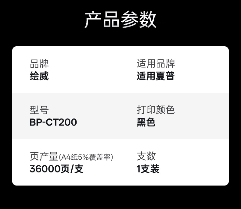 绘威适用夏普M2522R墨盒BP-CT200粉盒 SHARP BP-2522R墨盒M2322R 2822R 3122R M2522X复印机墨粉盒