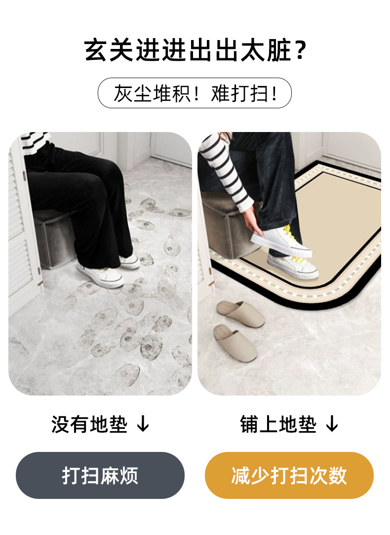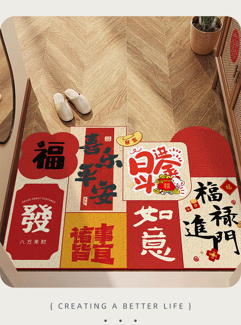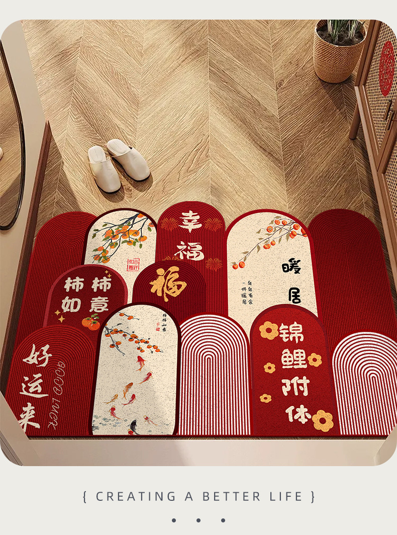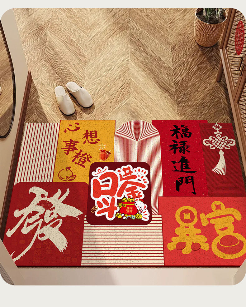 「数款可选!新中式高颜值」新中式进门丝圈地垫 入户门防滑除尘耐脏脚垫玄关耐磨可裁剪地毯居家日用布艺