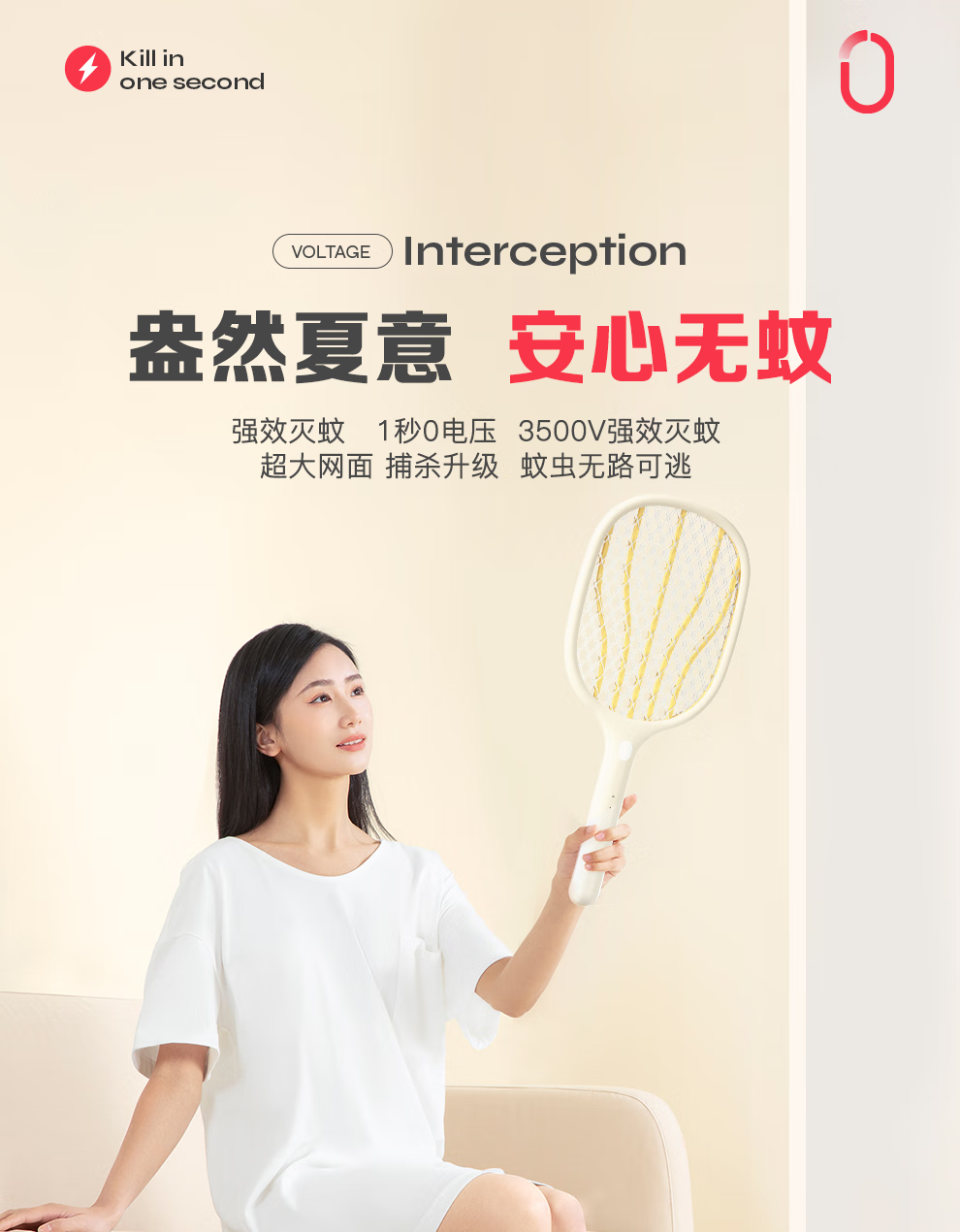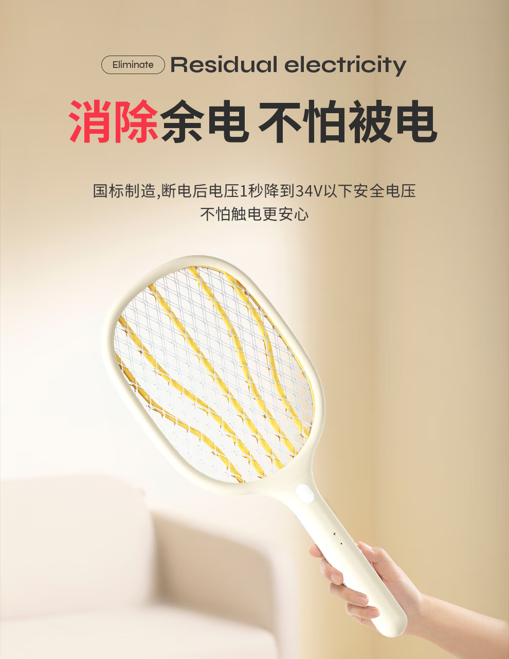 彩虹家用诱蚊电蚊拍 充电式苍蝇拍 物理灭蚊T6108