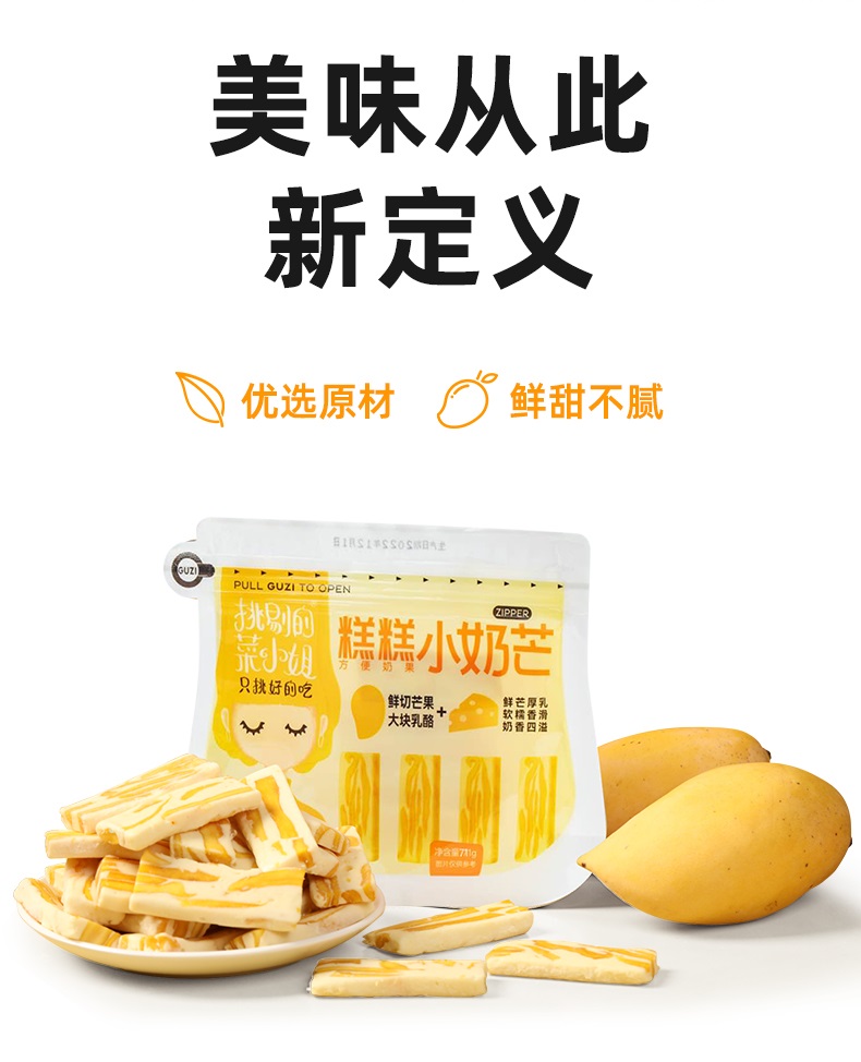菇滋菇滋芒果奶糕大块乳酪干奶芙芒果干之恋休闲零食*3包