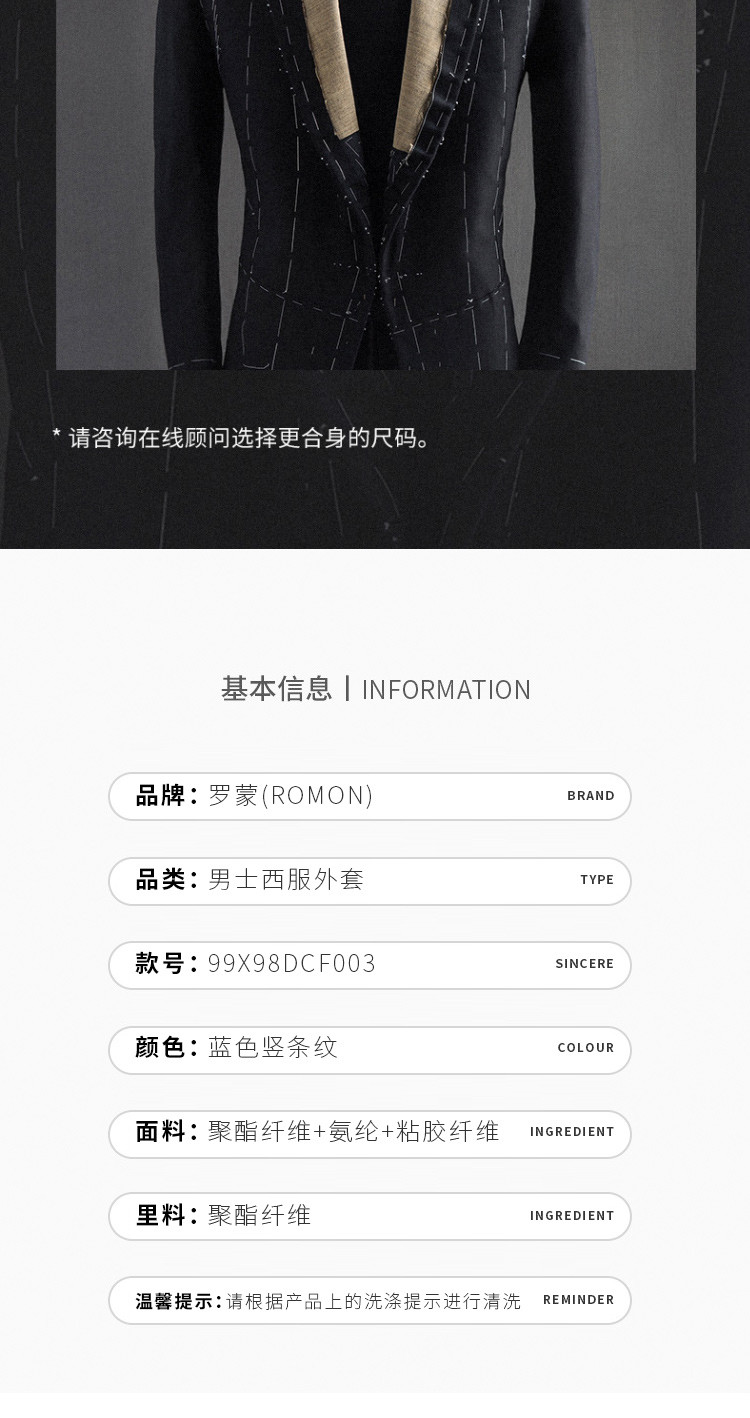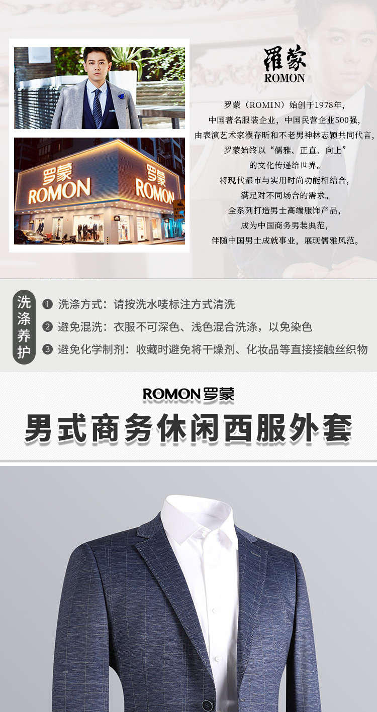 【微弹舒适】罗蒙春夏小西装外套男士商务通勤休闲百搭格纹单西服男