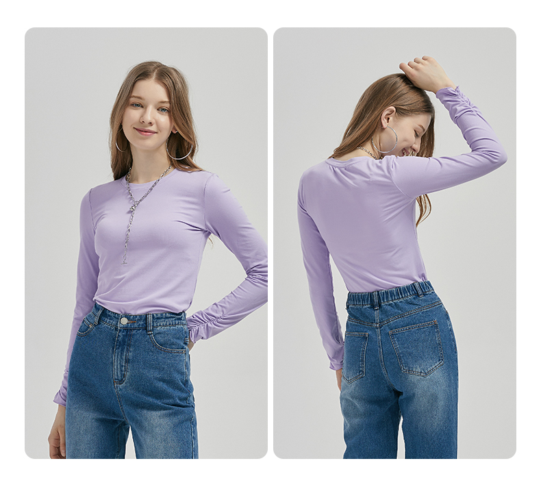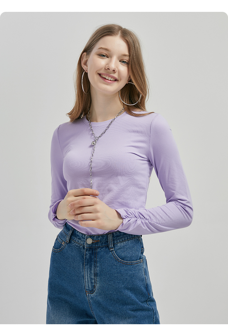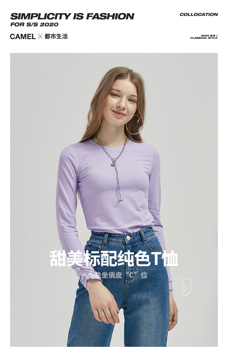 骆驼女装2022夏季新款简约长袖打底衫上衣女薄款潮流外穿内搭T恤 W0W1VR125