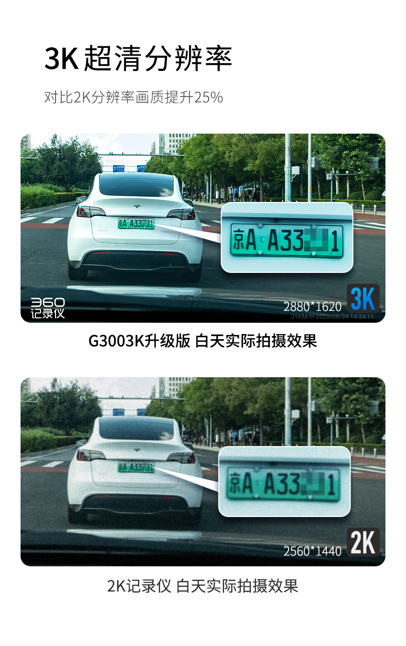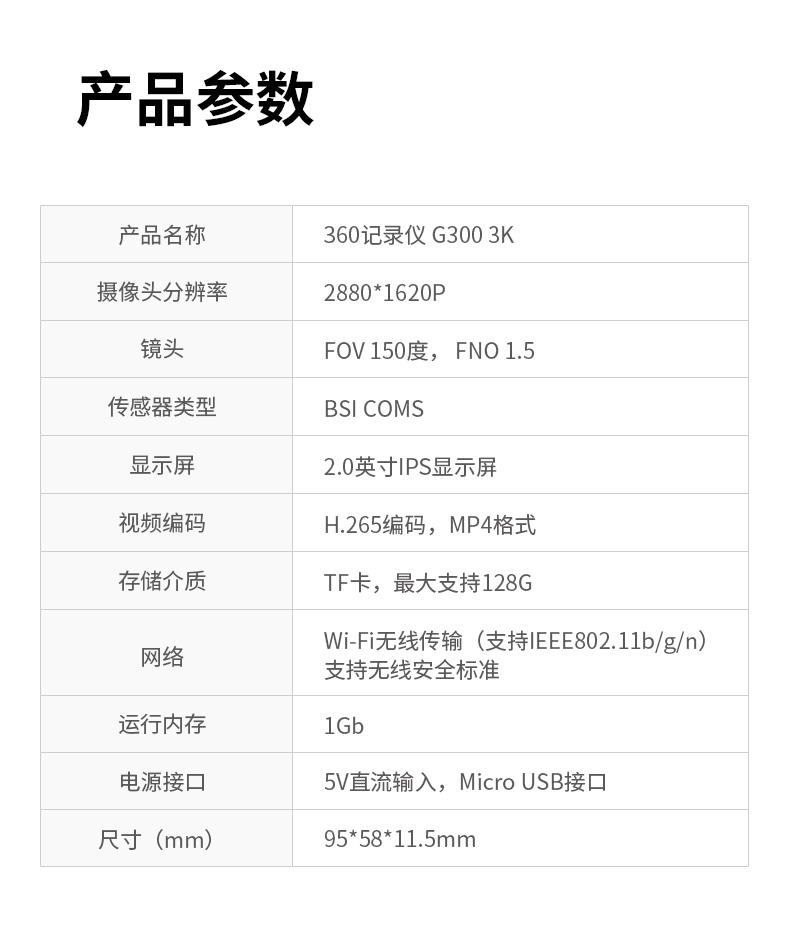 【超值】360行车记录仪高清 G300 3K升级版 3K高清拍摄 星光夜视 一体式设计