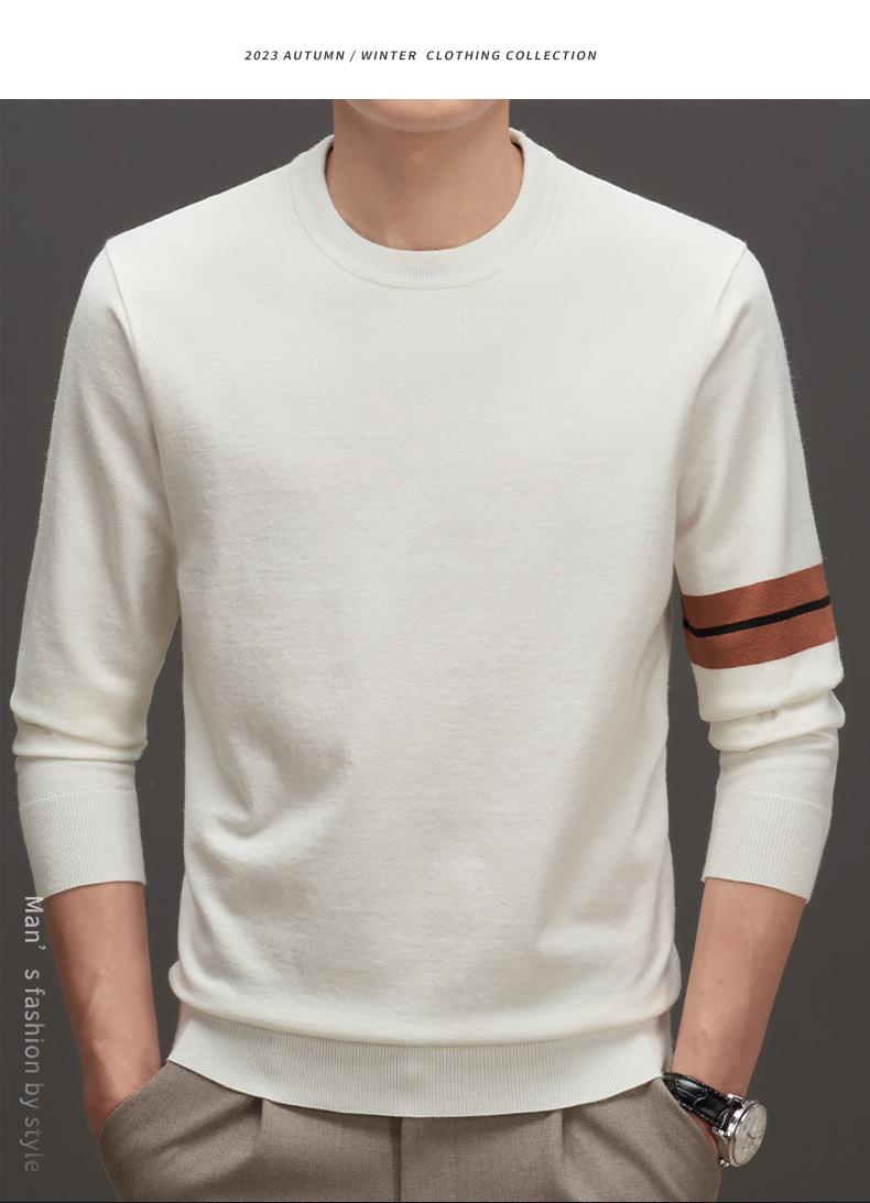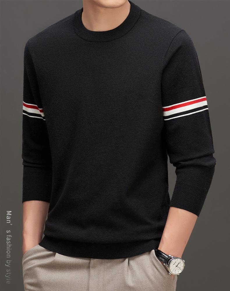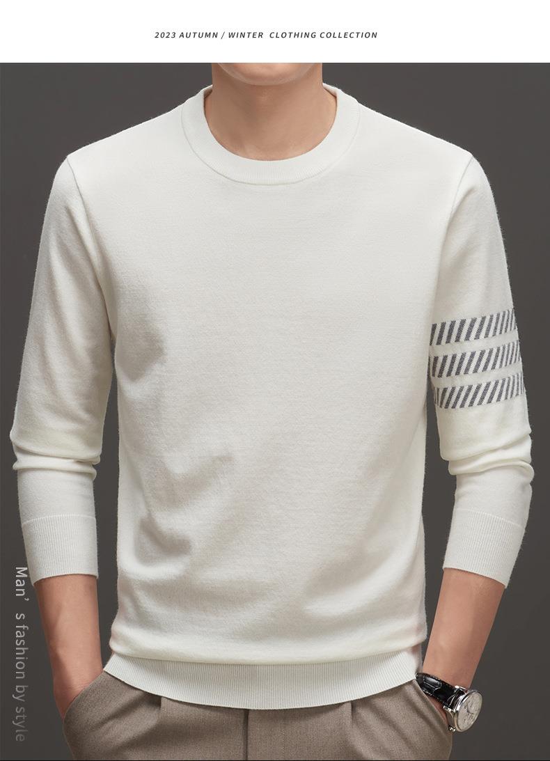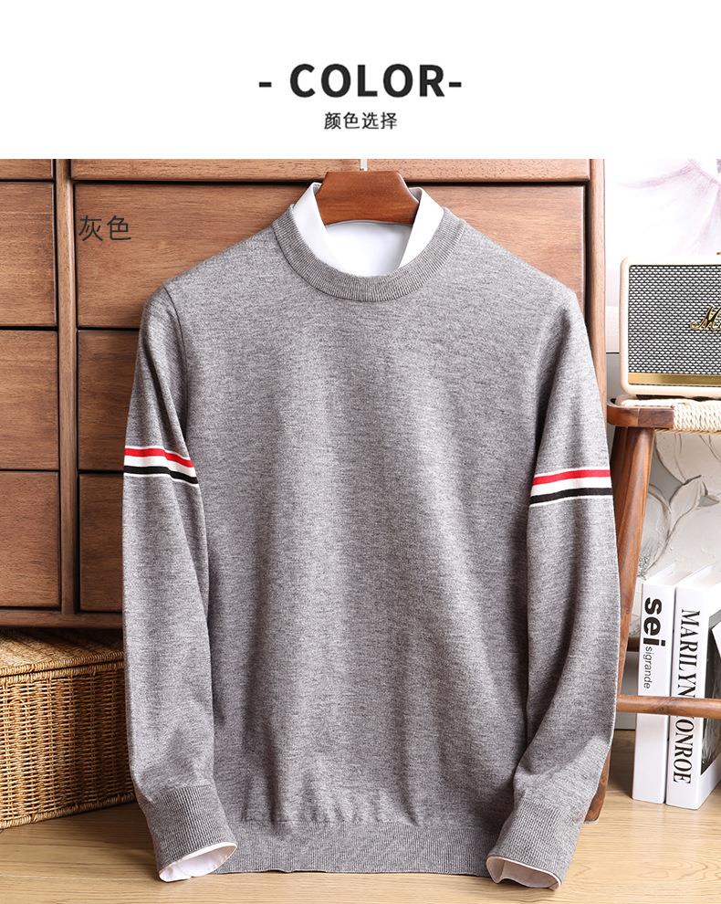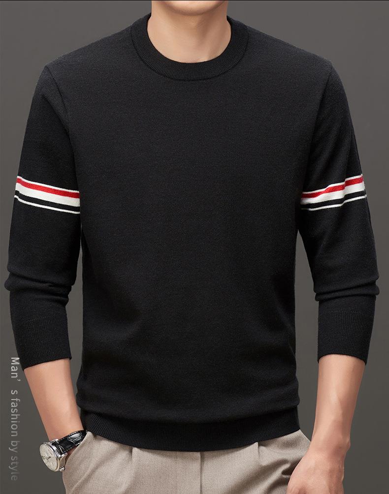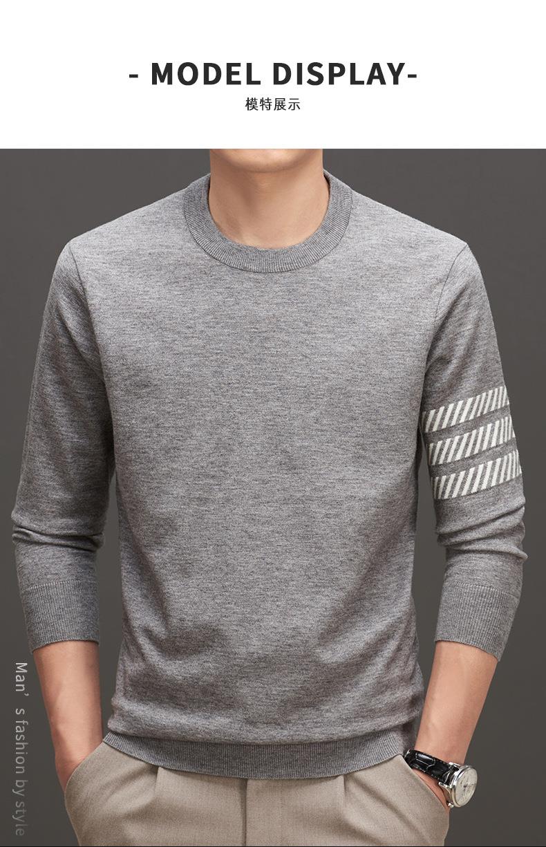 秋冬季男士天丝羊毛T恤圆领嵌花针织衫打底衫中青年长袖线衫毛衣
