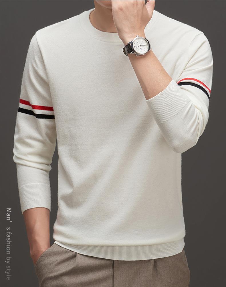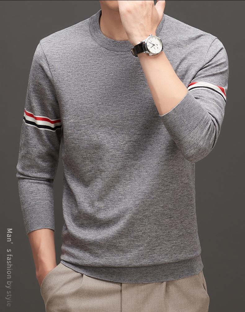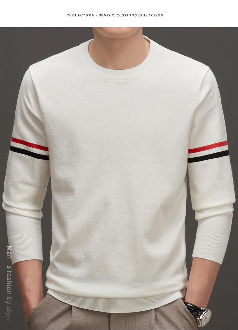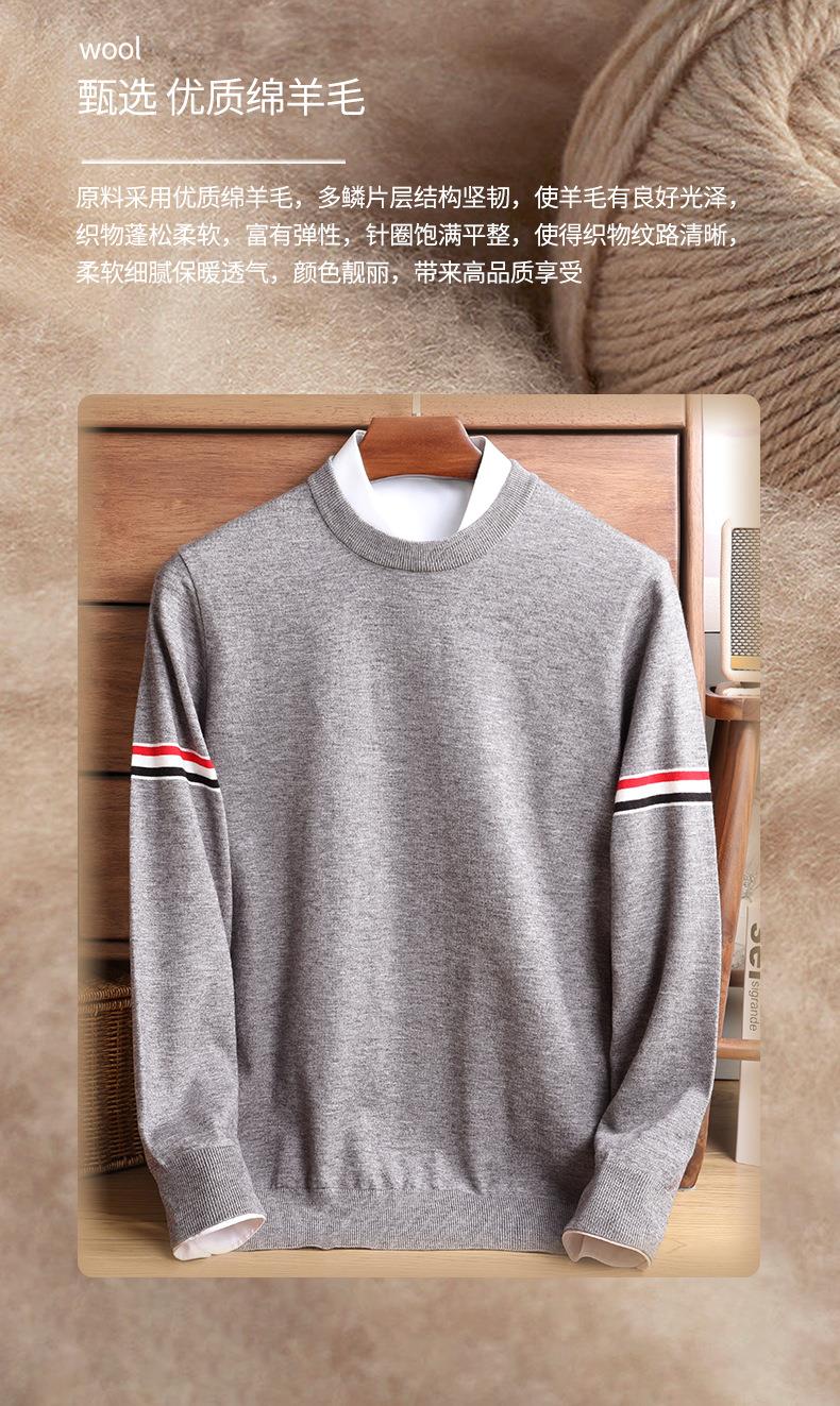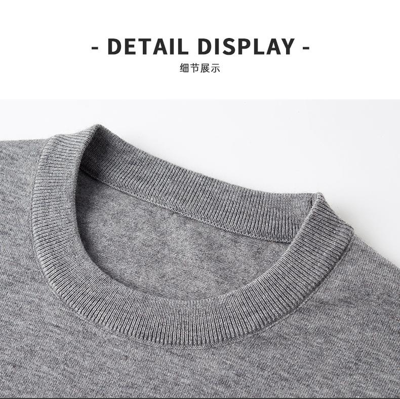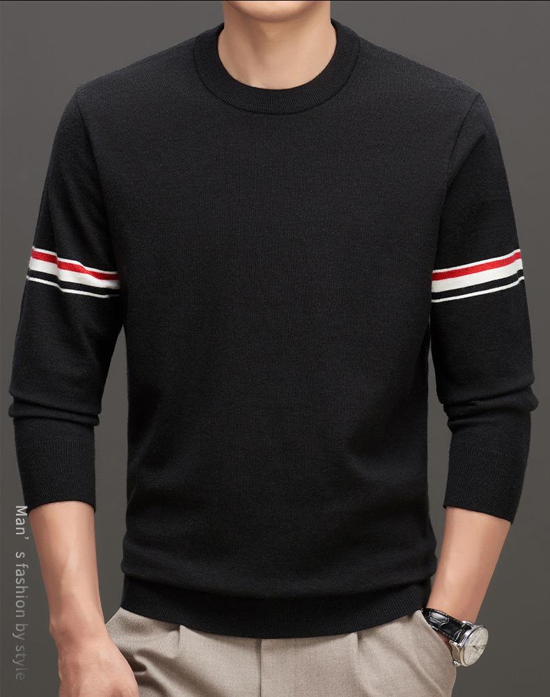 秋冬季男士天丝羊毛T恤圆领嵌花针织衫打底衫中青年长袖线衫毛衣