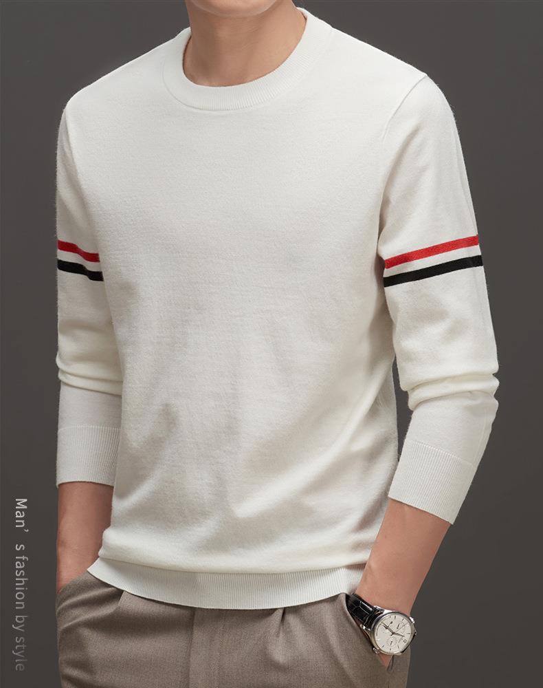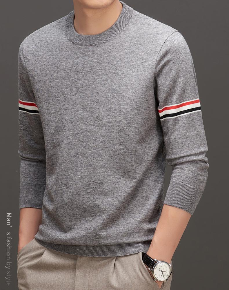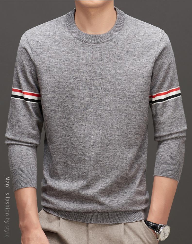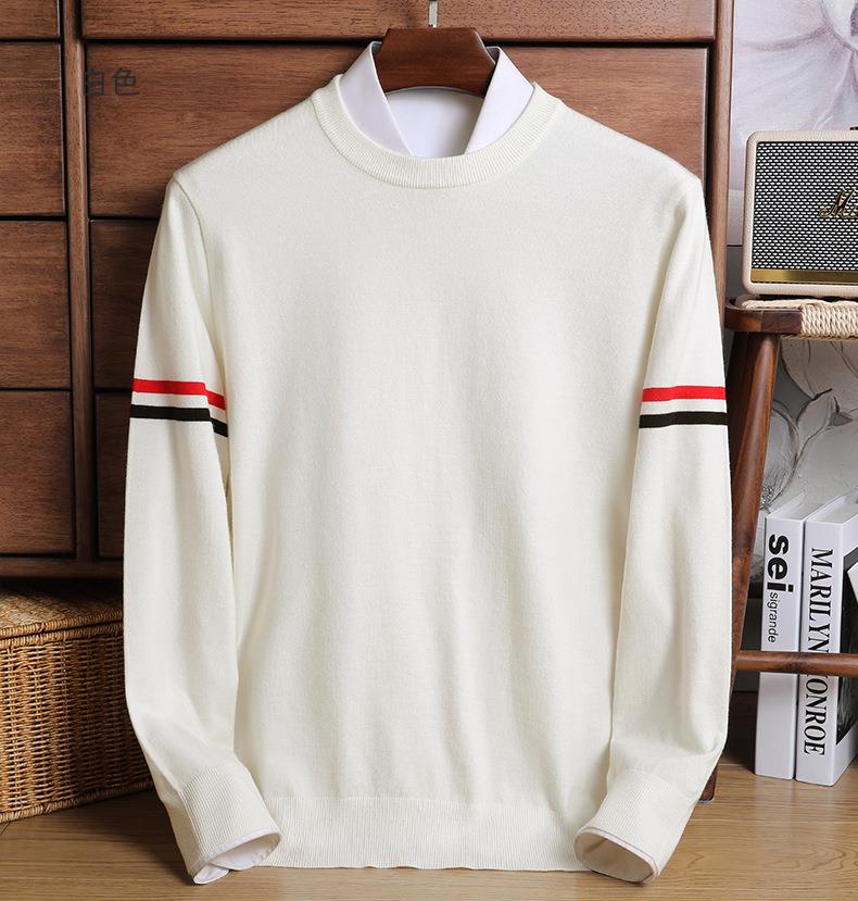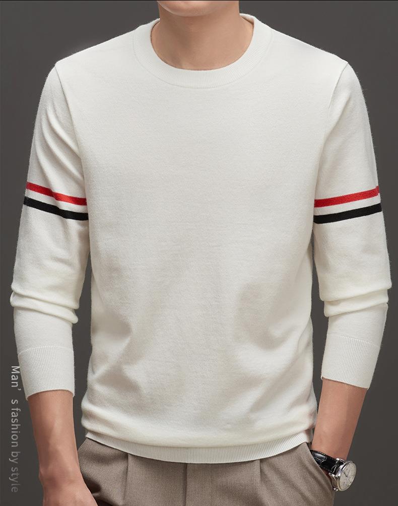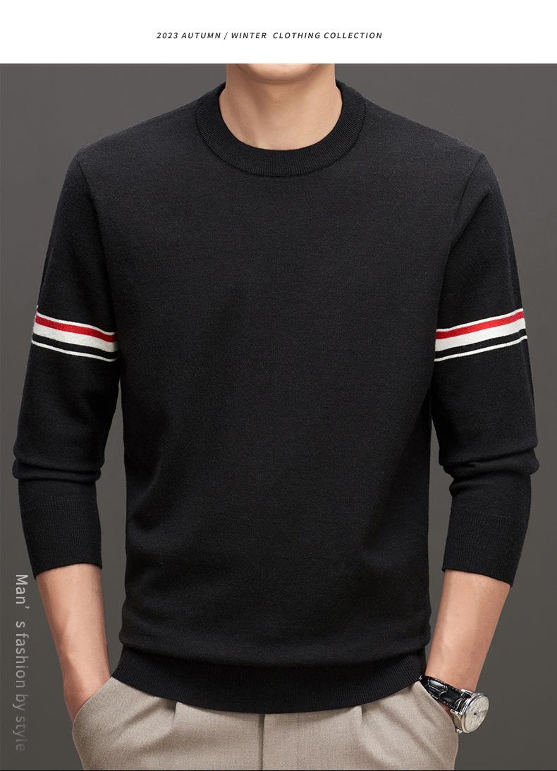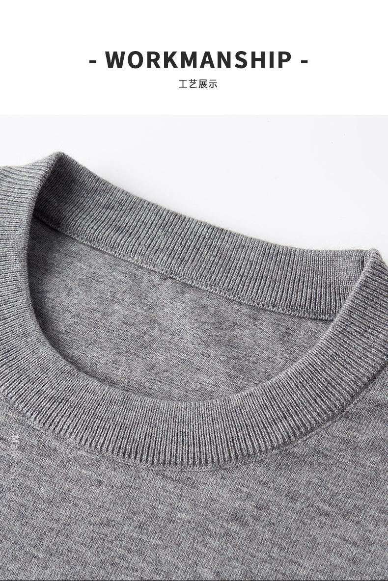 秋冬季男士天丝羊毛T恤圆领嵌花针织衫打底衫中青年长袖线衫毛衣