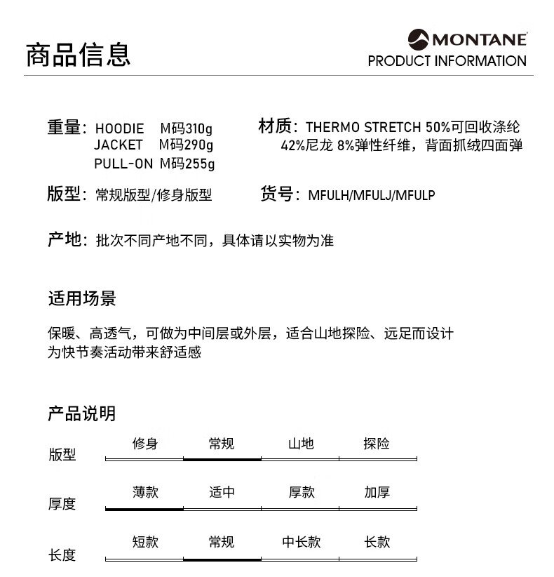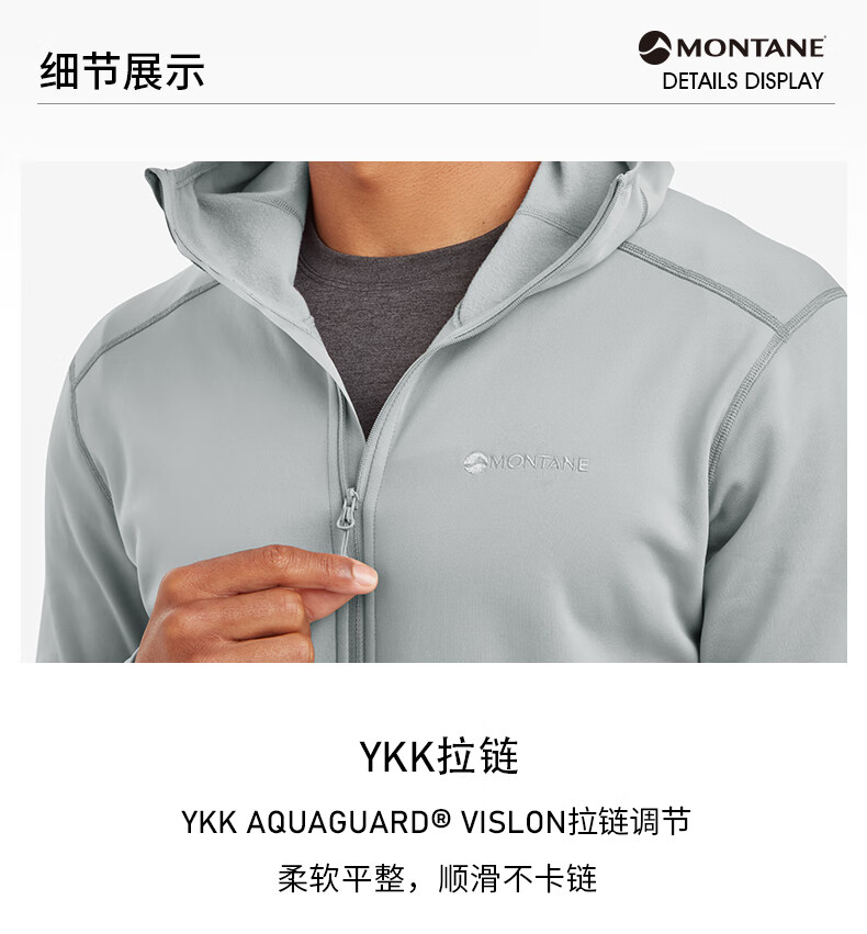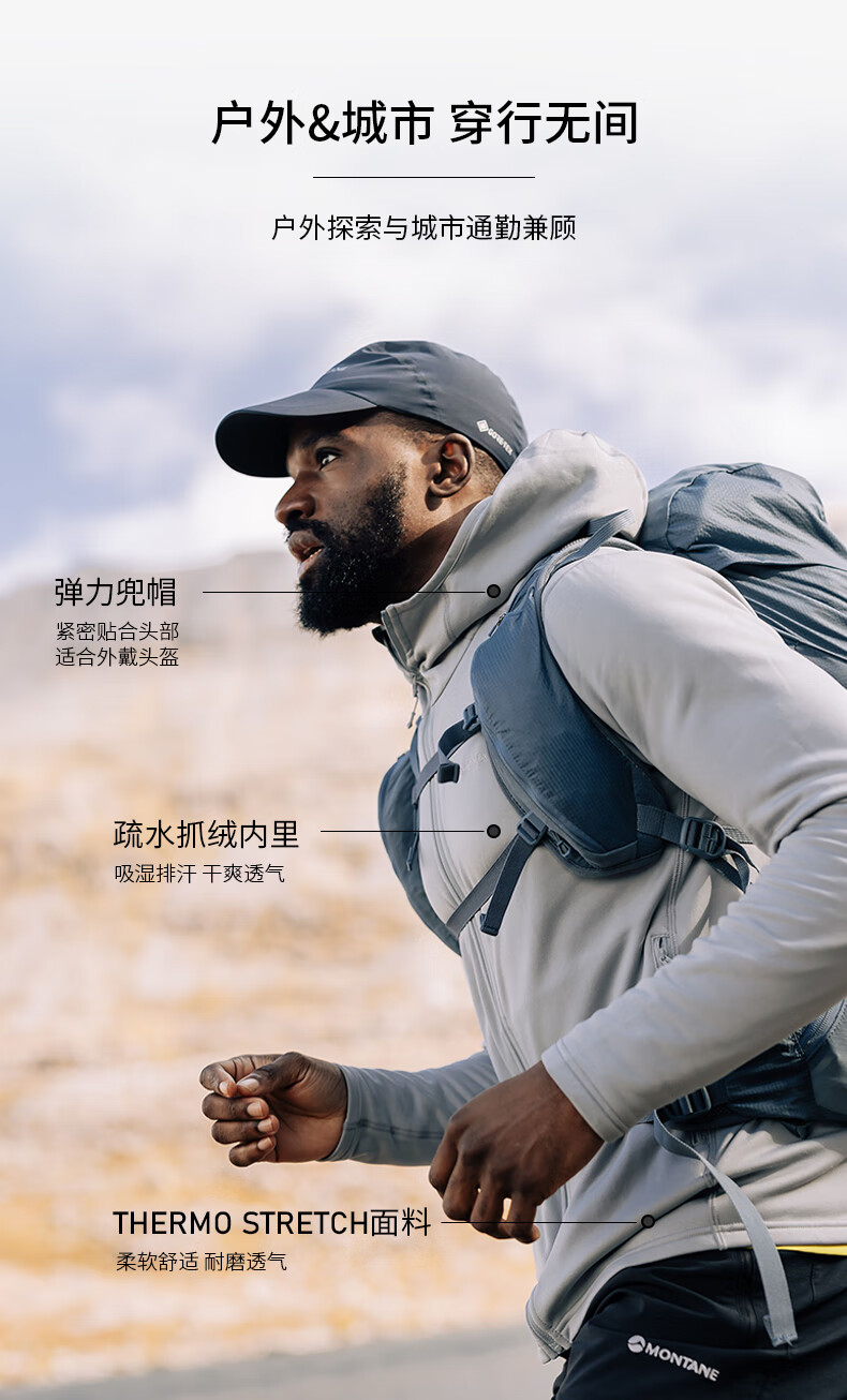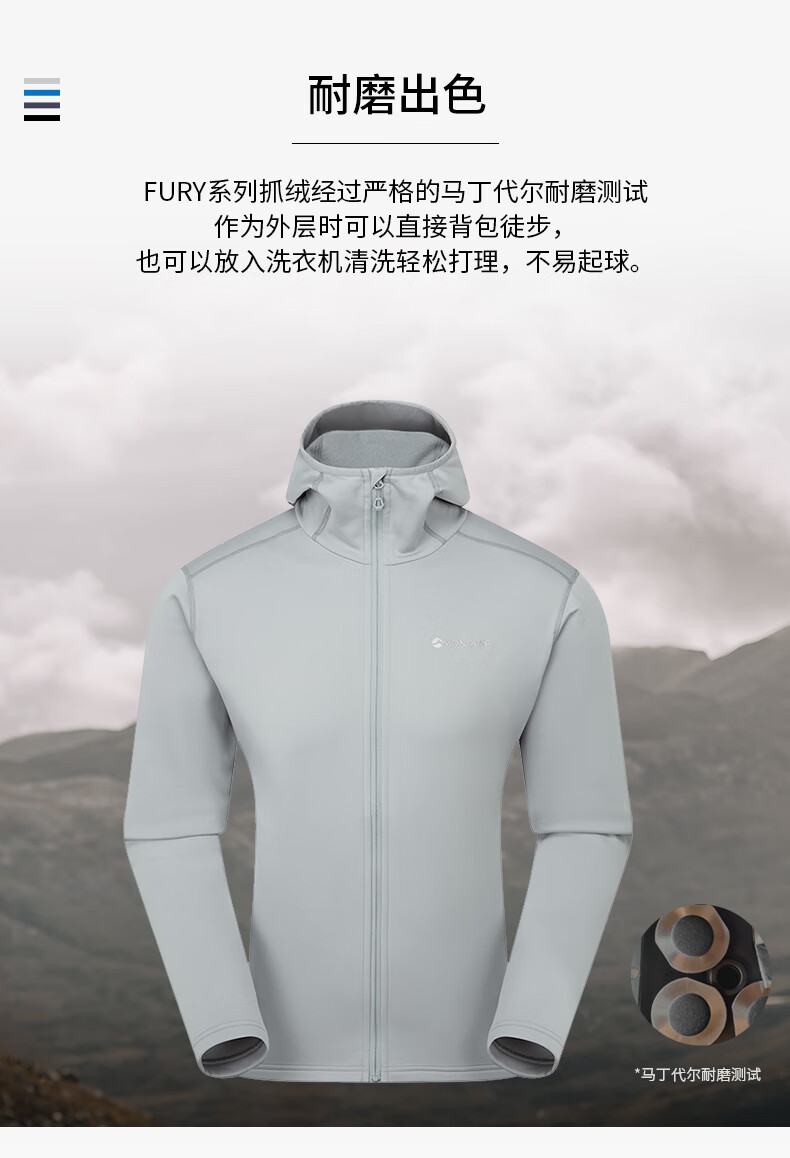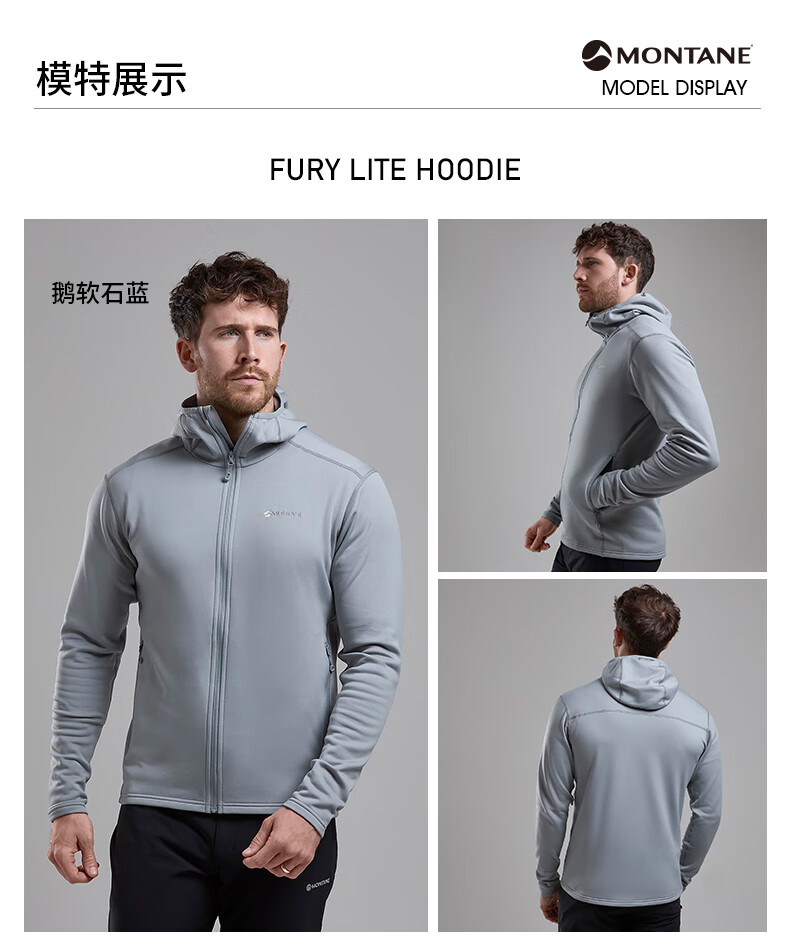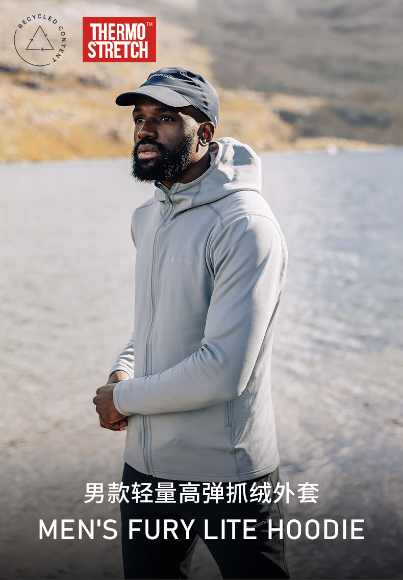 MONTANE 盟泰恩FURY LITE户外抓绒衣 男款连帽耐用透气耐磨轻量高弹外套