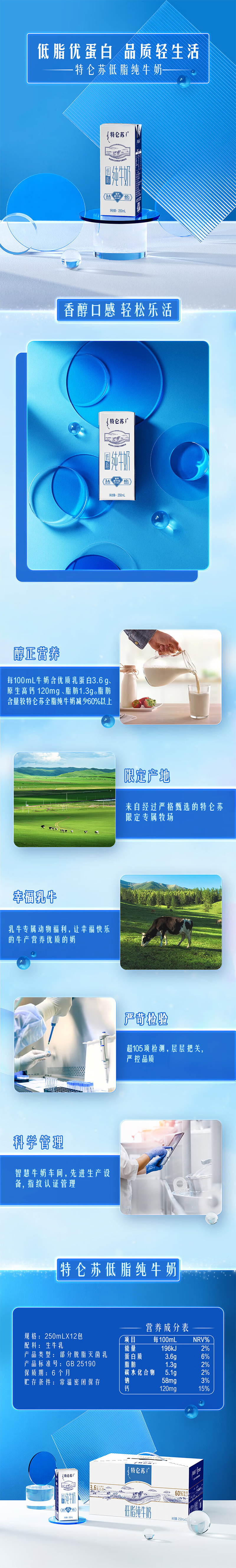 特仑苏低脂纯牛奶部分脱脂灭菌乳利乐苗条装250ml*12包