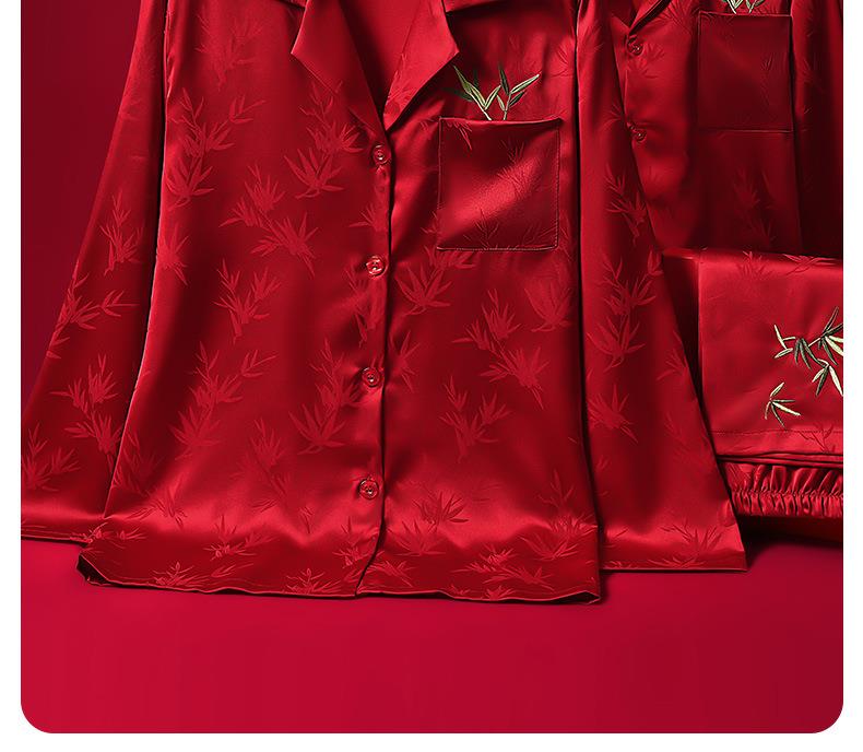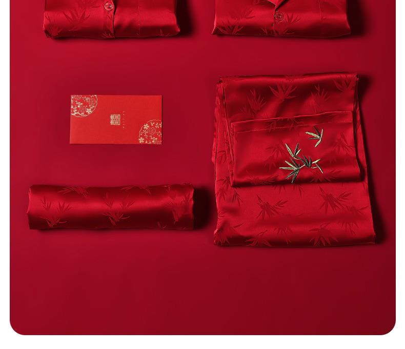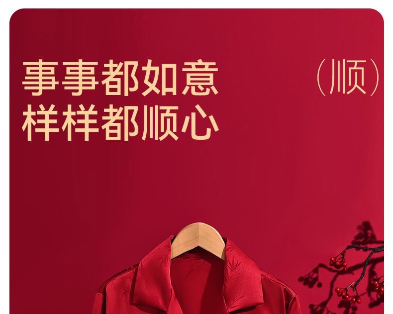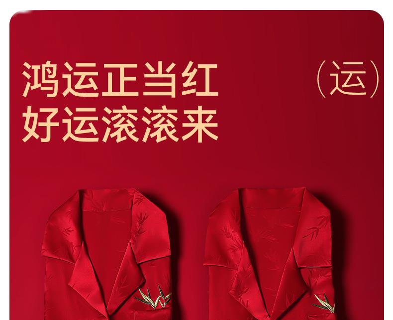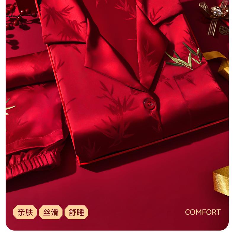 【天作之合~本命年红色结婚睡衣情侣套装】喜庆大红睡衣情侣冰丝睡衣