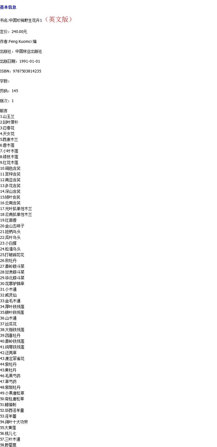 中国珍稀野生花卉1423 英文RARE AND PRECIOUS WIND FLOWERS OF CHINA中国林业出版社正版畅销书籍