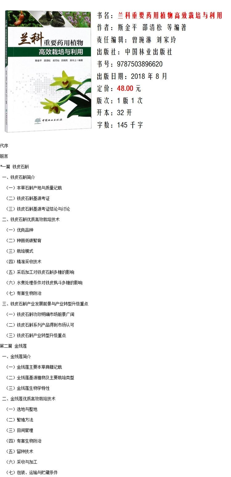 兰科重要药用植物高效栽培与利用 斯金平 9662 中国林业出版社 畅销书籍