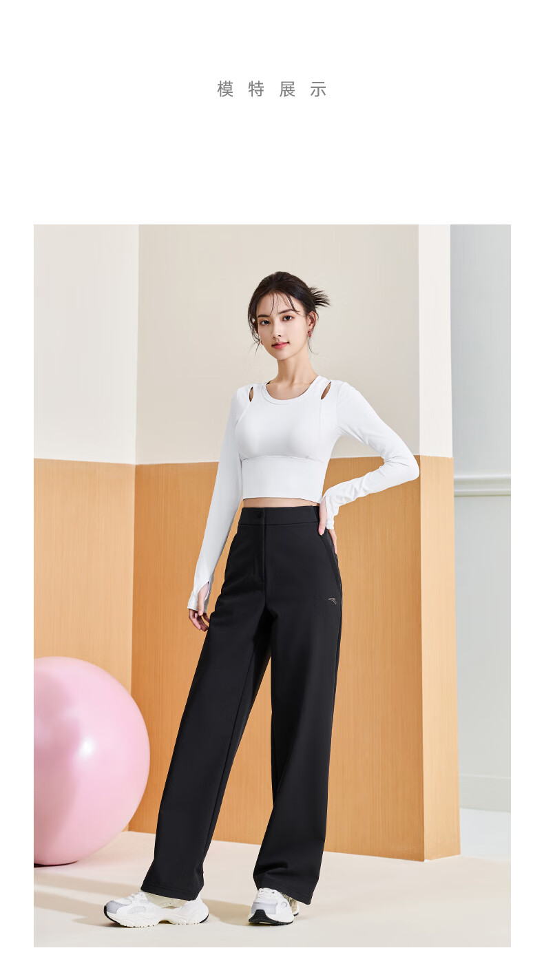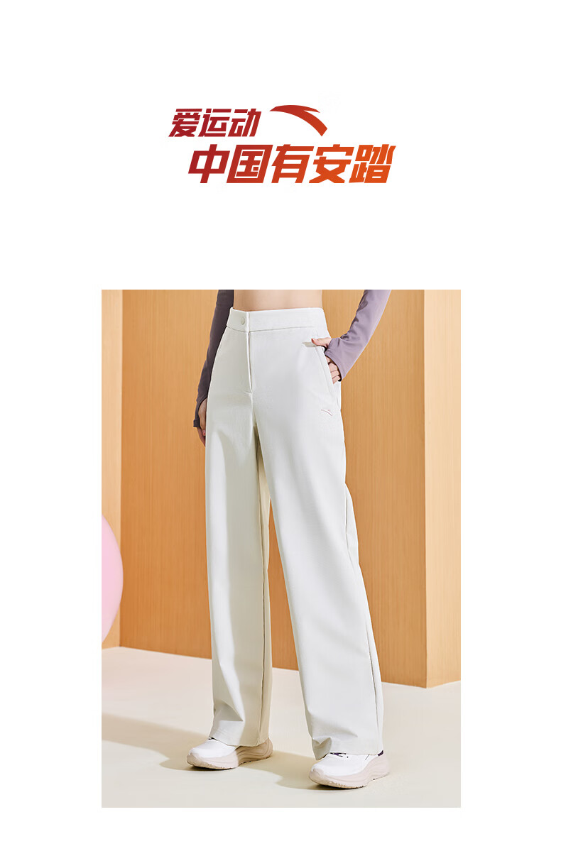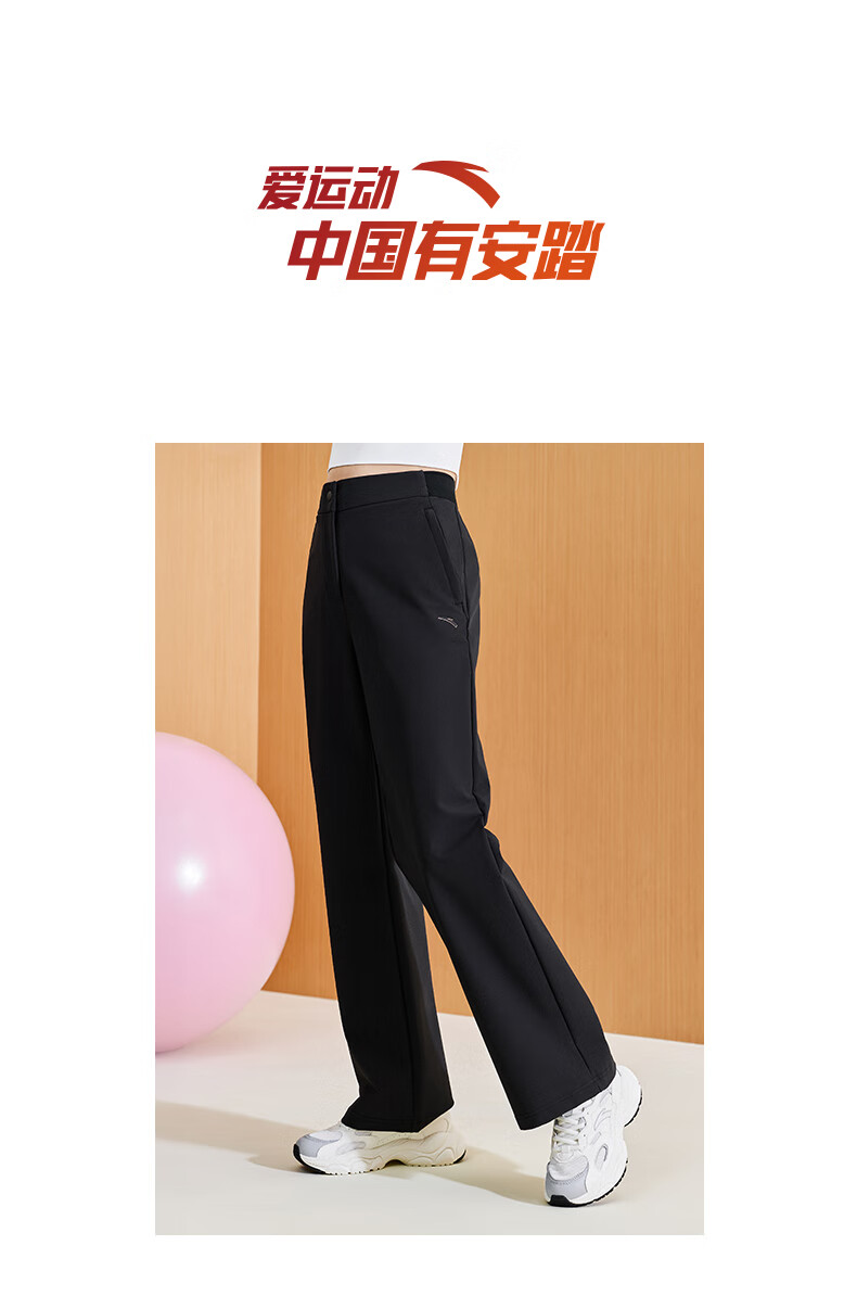 安踏(ANTA)高腰运动长裤女士冬季新款直筒显瘦休闲裤阔腿裤子162517508
