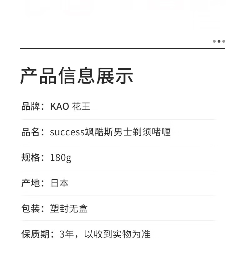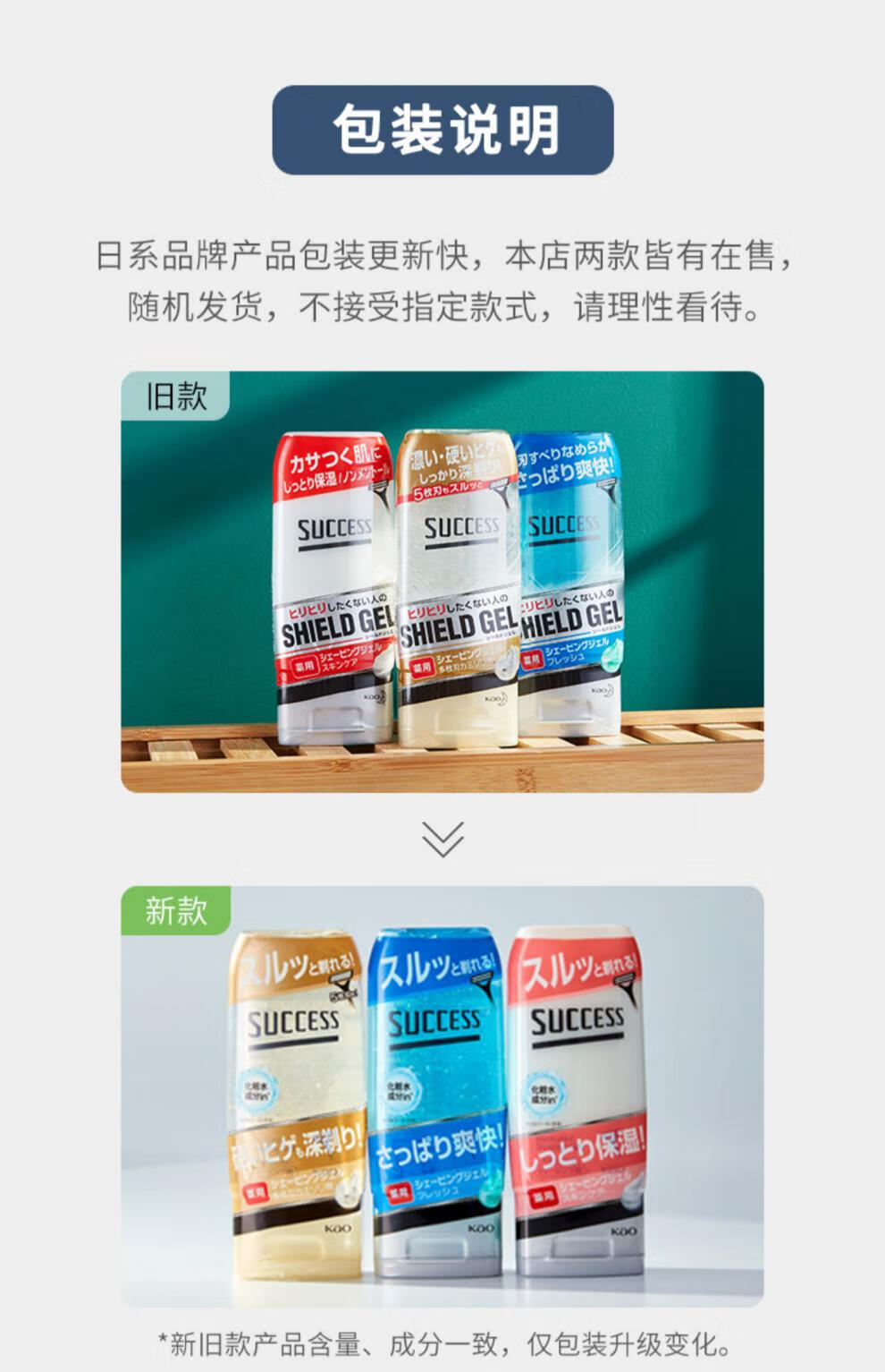 【保税仓】KAO/花王SUCCESS男士剃须啫喱膏浓密保湿深剃型180g/瓶