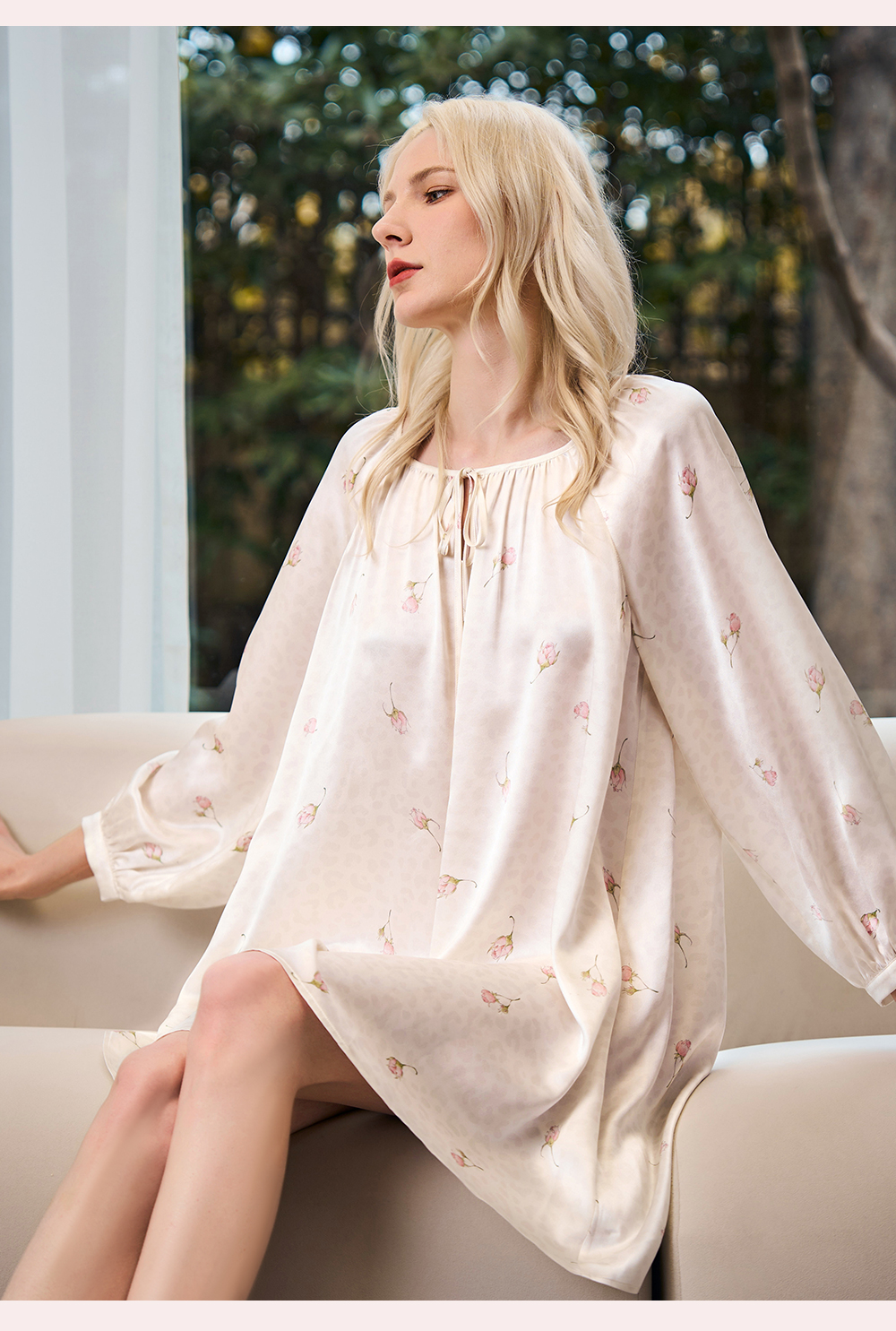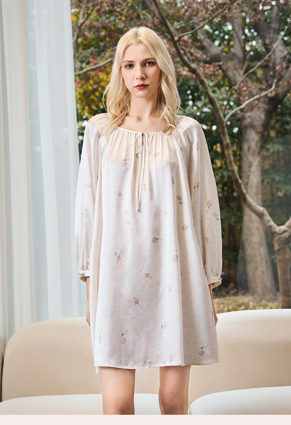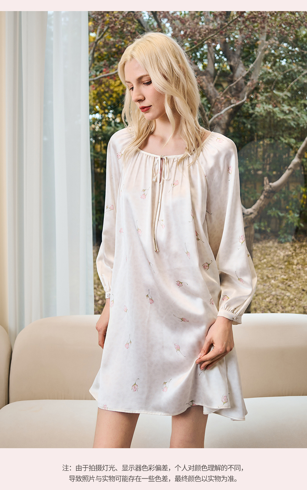 Solo seta22姆米真丝印花睡裙桑蚕丝可外穿家居服情人节送礼礼物