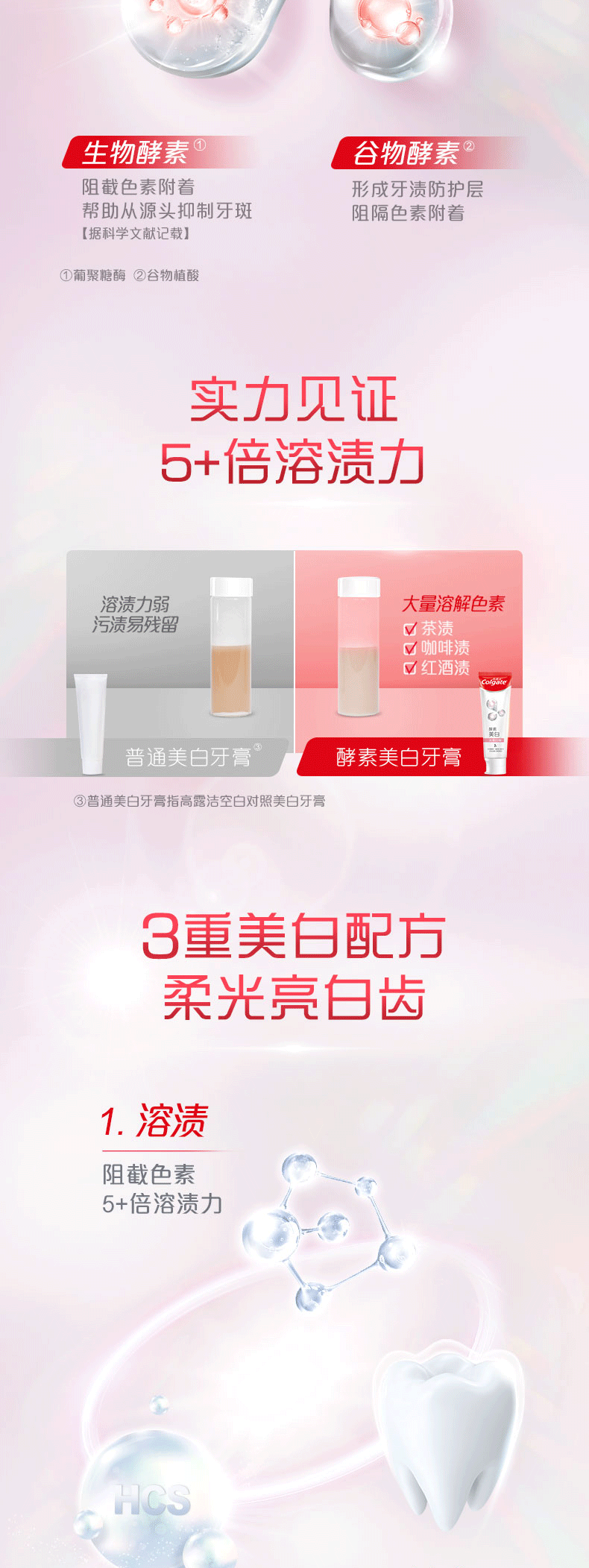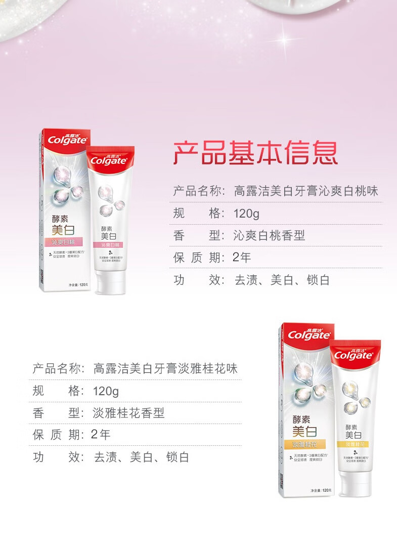 高露洁(Colgate)活性酵素美白牙膏120g 沁爽白桃味 清新去口气