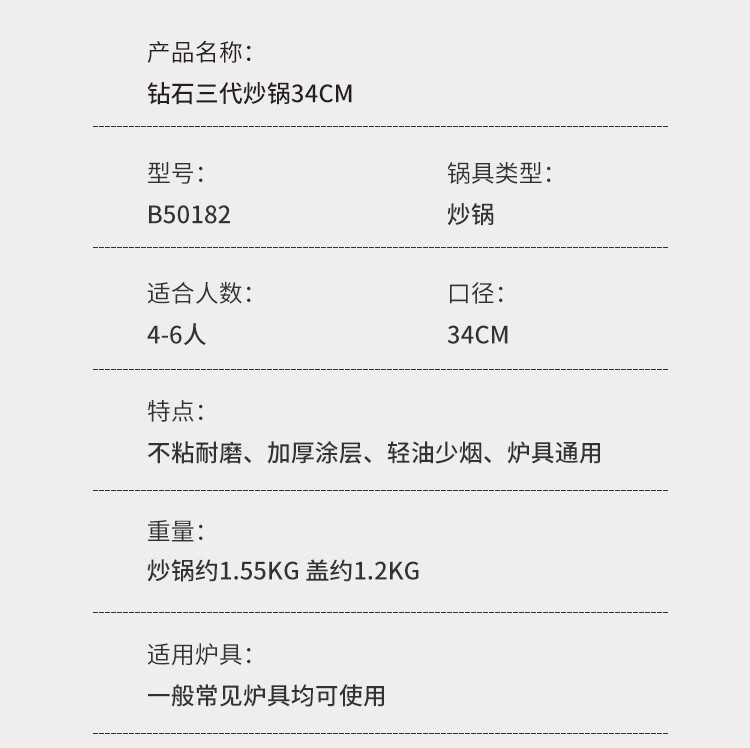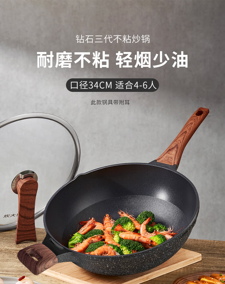 炊大皇 钻石三代炒锅34cm 带附耳B50182
