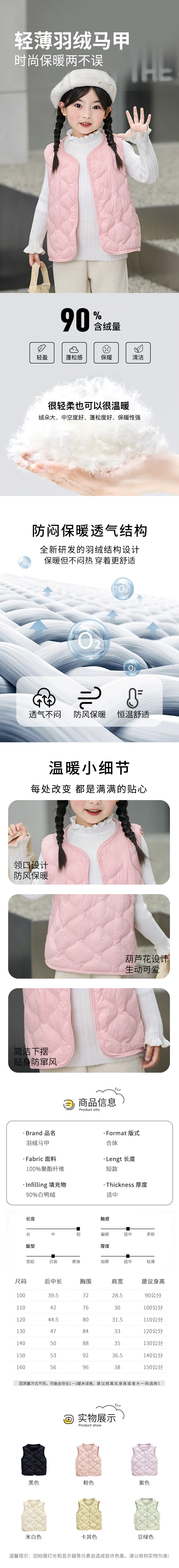 【儿童葫芦花菱格羽绒马甲】 优质羽绒 蓬松轻盈 保暖御寒 多色可选