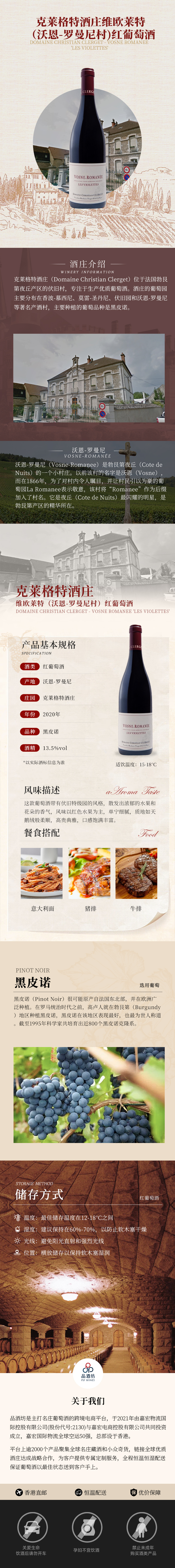 2020 Domaine Christian Clerget - Vosne Romanee 'Les Violettes' 克莱格特酒庄维欧莱特(沃恩-罗曼尼村)红葡萄酒