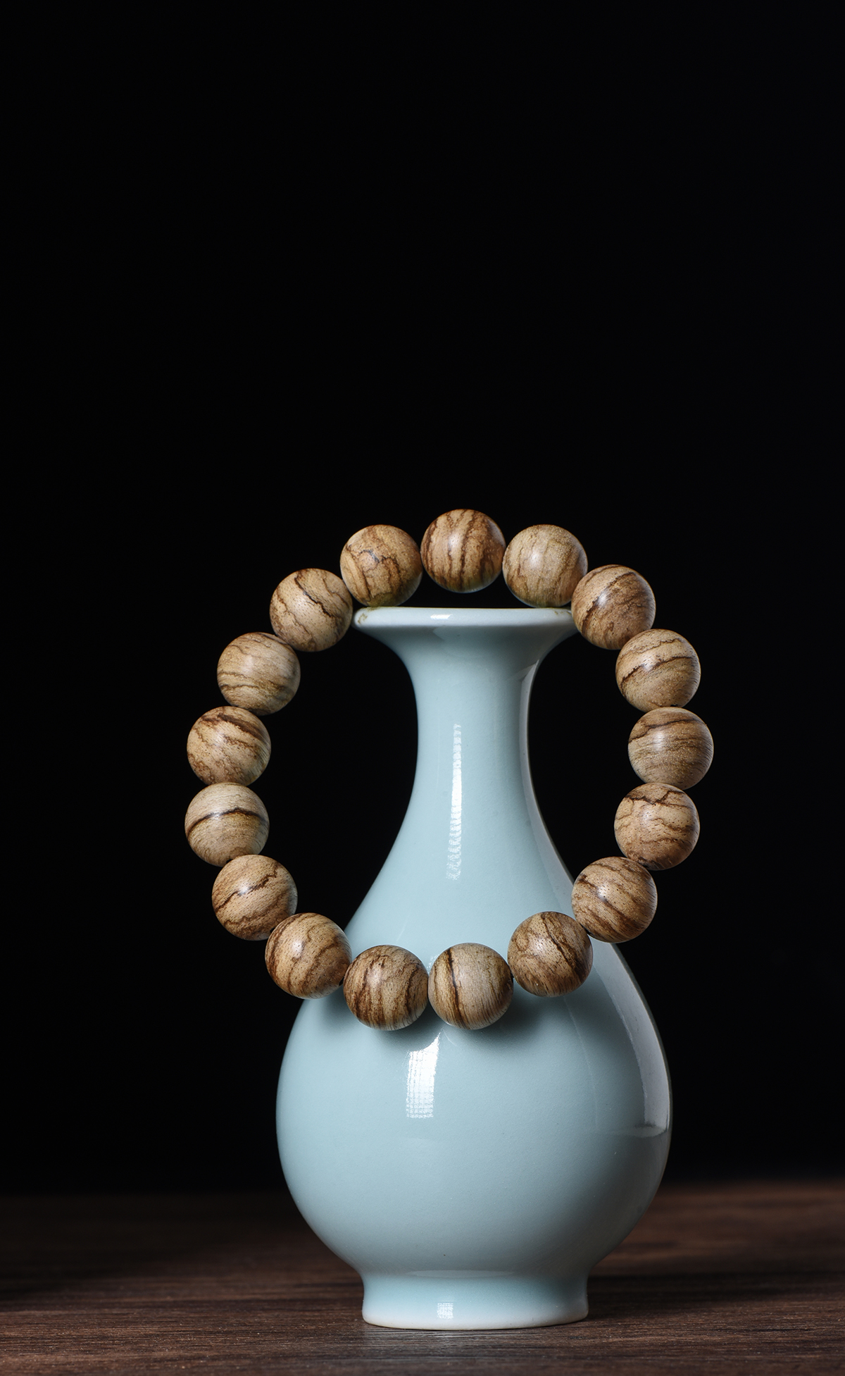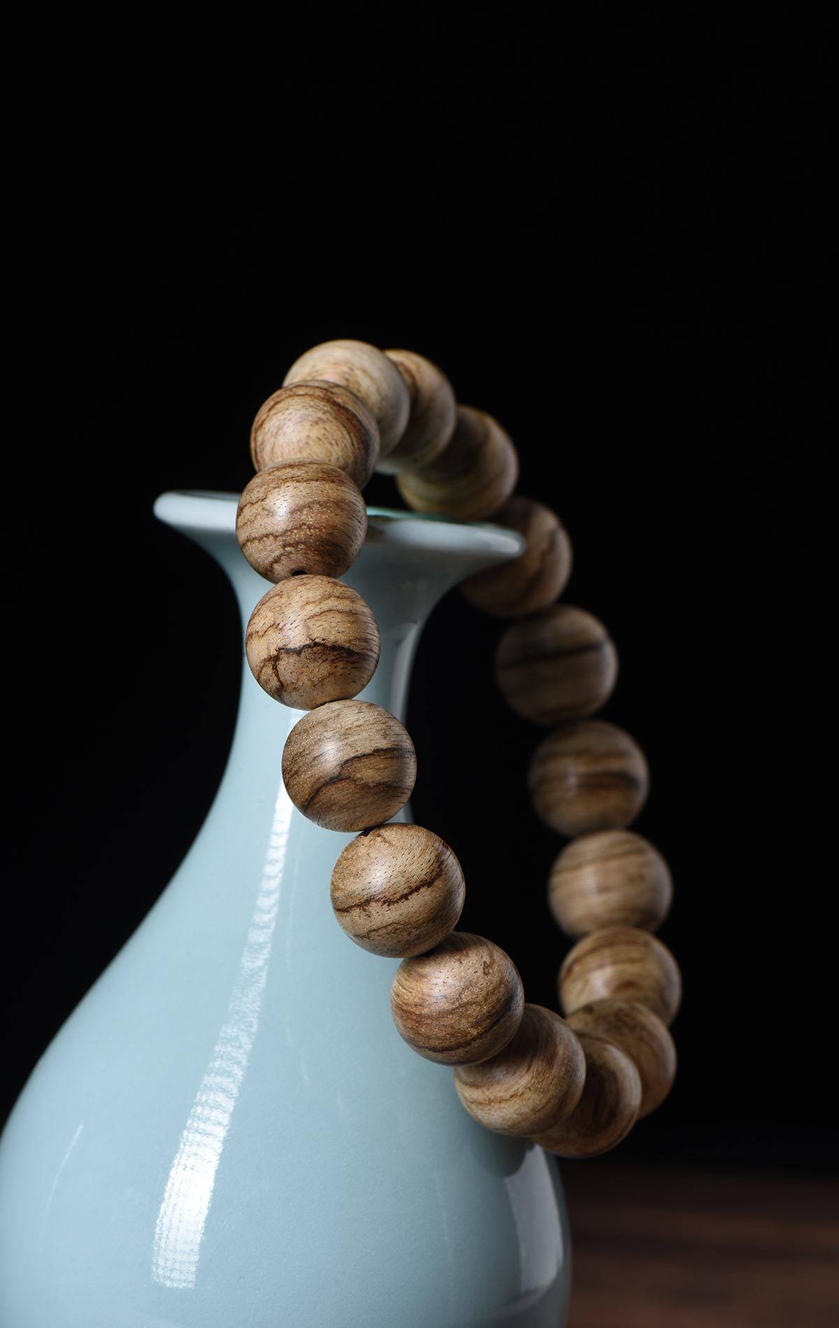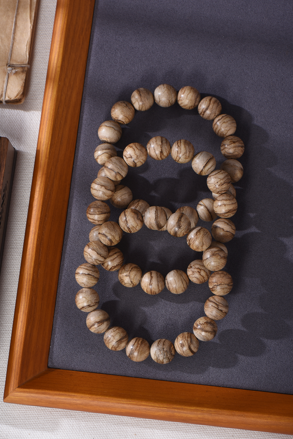 仔细看这手串上的纹理,深浅交错,每一条都不一样。