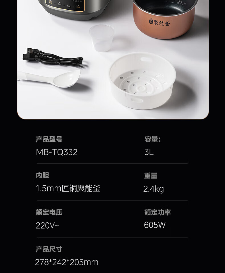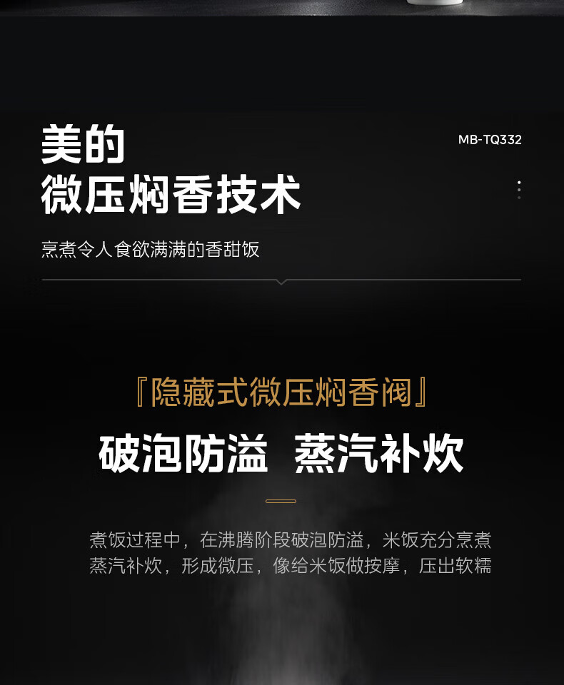 美的 电饭煲 3L大容量智能电饭煲 MB-TQ332
