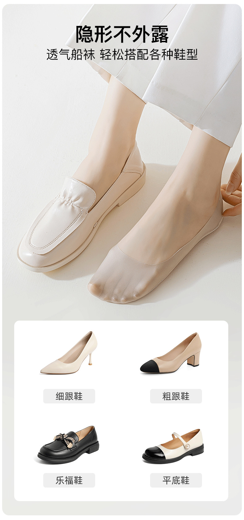 宝娜斯 冰丝船袜女夏薄款棉底防滑不掉跟短袜高跟鞋浅口隐形袜子女 心选到家