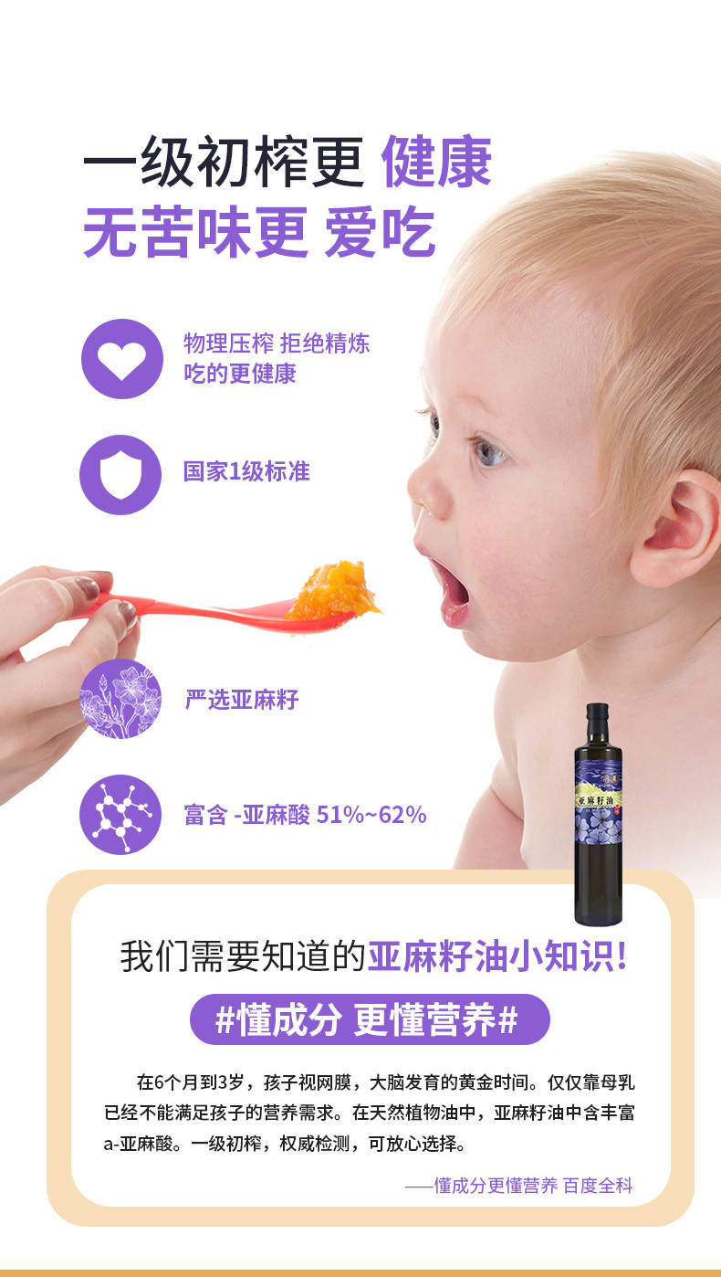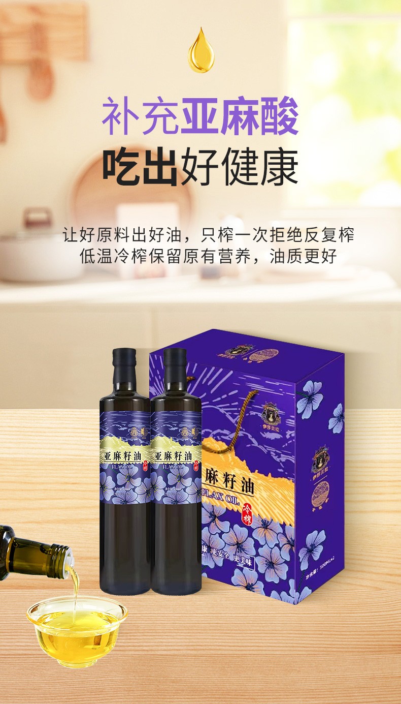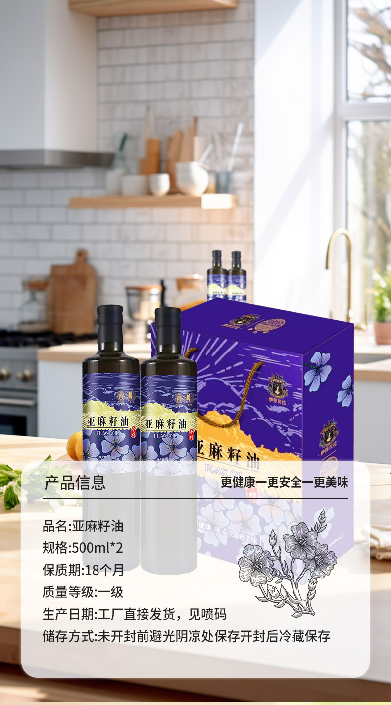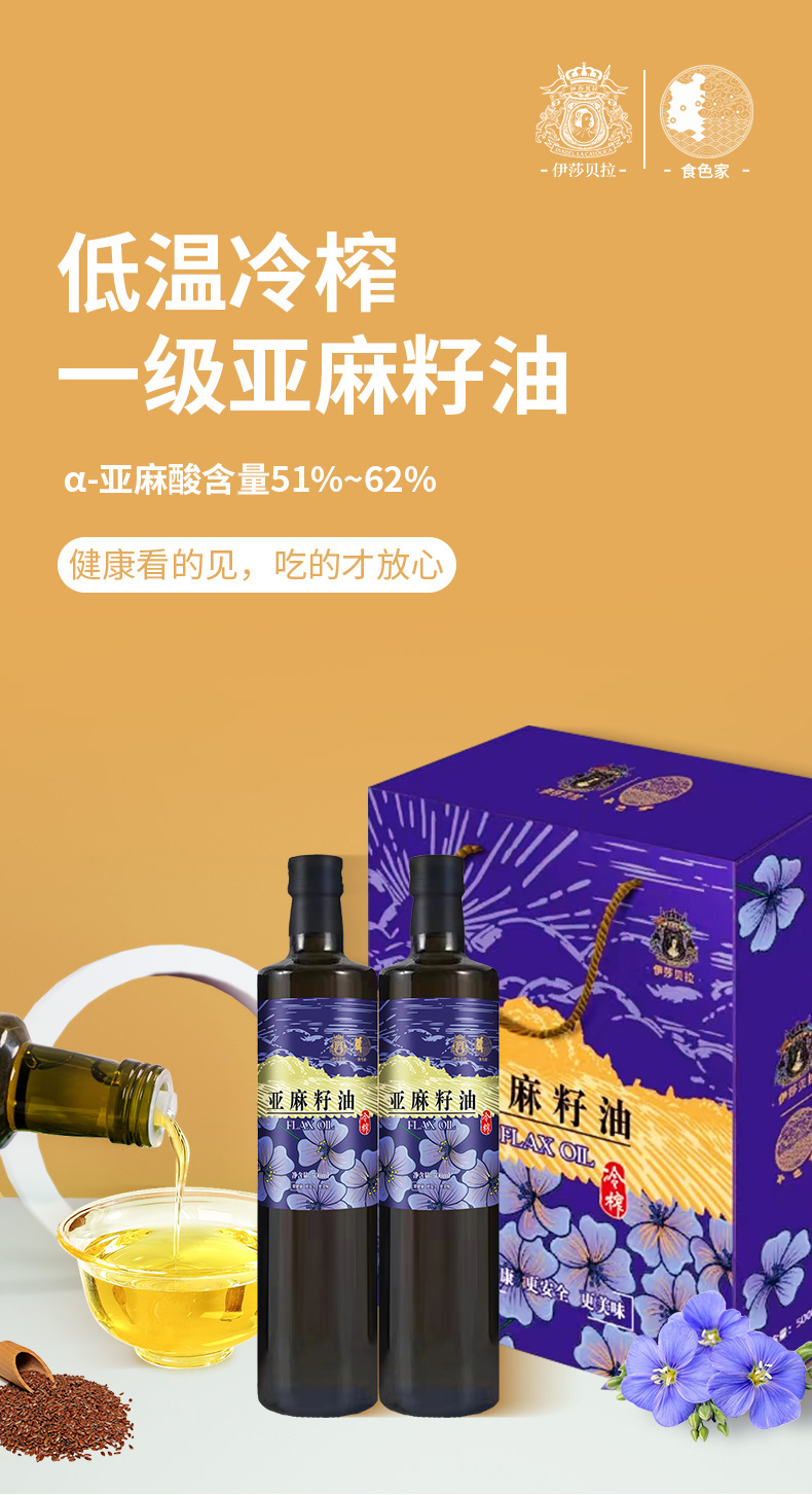 伊莎贝拉&食色家-百紫千红 冷榨一级亚麻籽油500ml*2