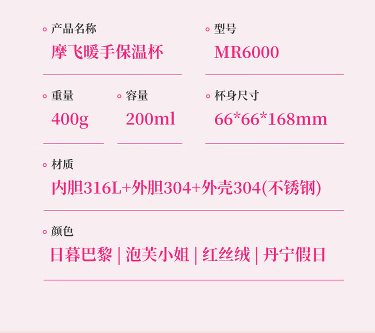 Morphy Richards摩飞暖手保温杯MR6000 红色/蓝色/粉色/紫色