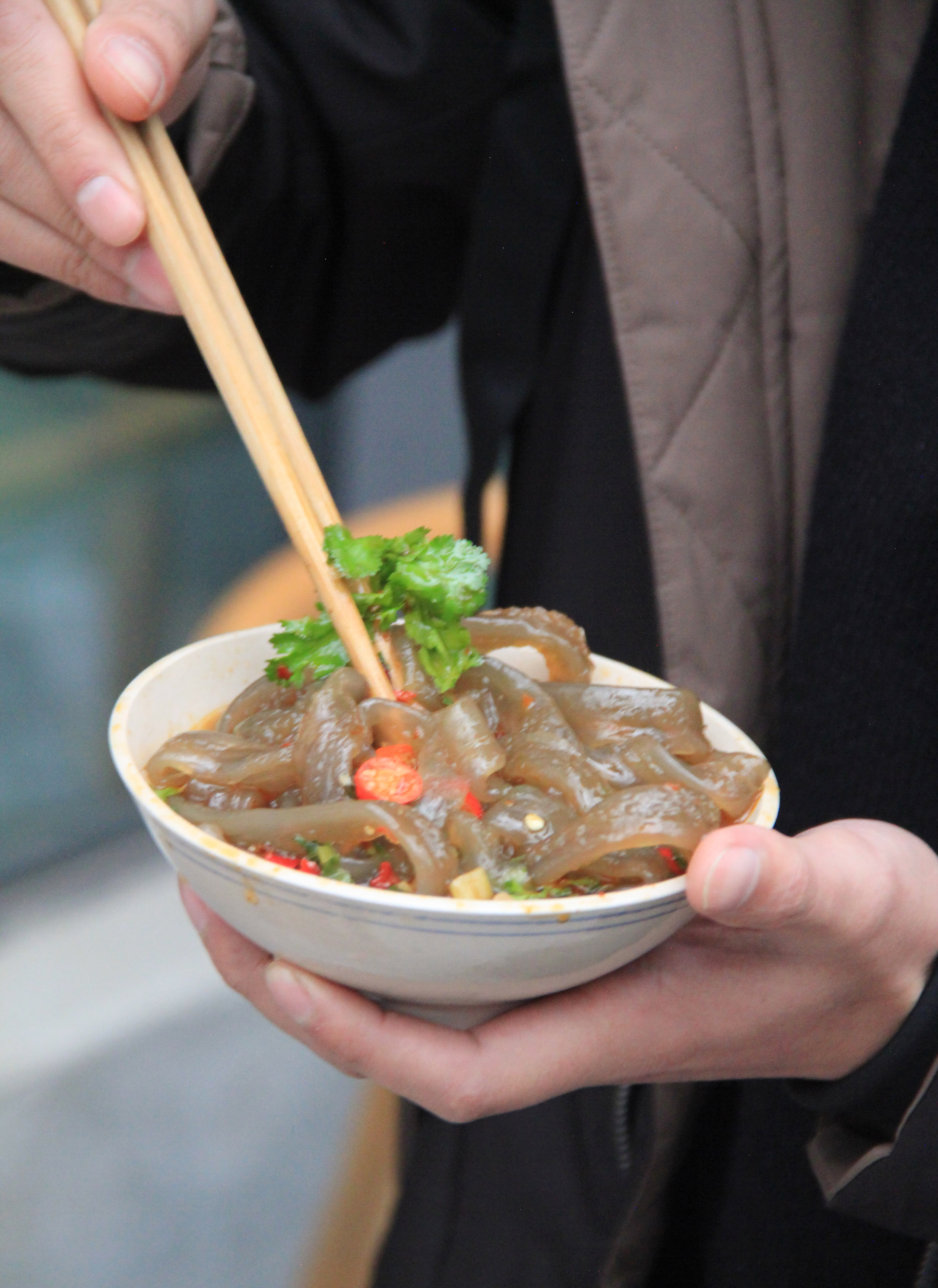 终于在等到有机会拜访玖农,范总团队下厨给我们做了午饭,第一次吃到宽粉儿做的芍皮!太有劲道了,忍不住多吃了好几口。后来这款红薯粉就成了社区火锅的爱用食材。