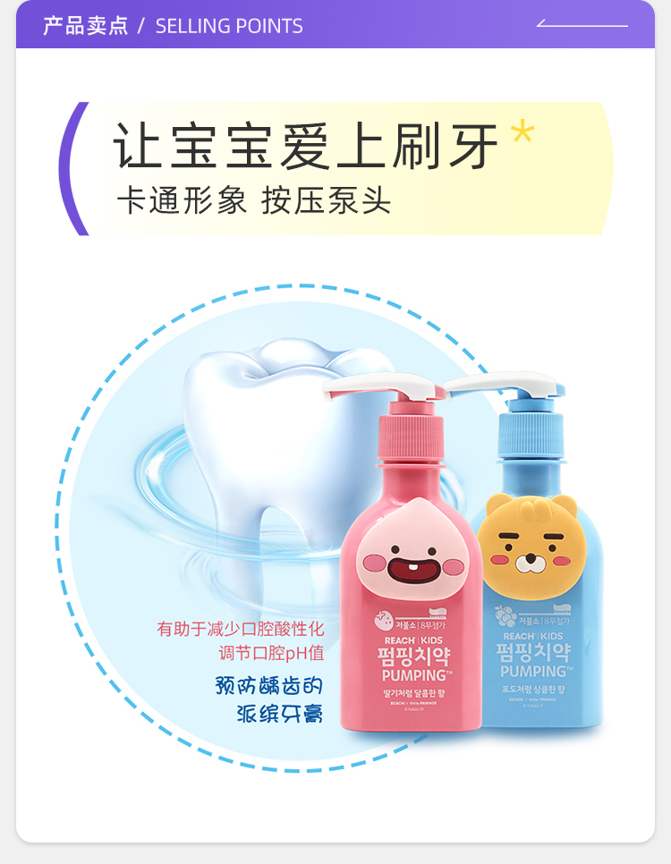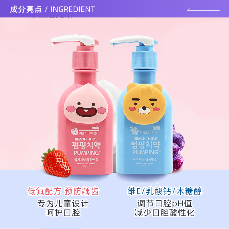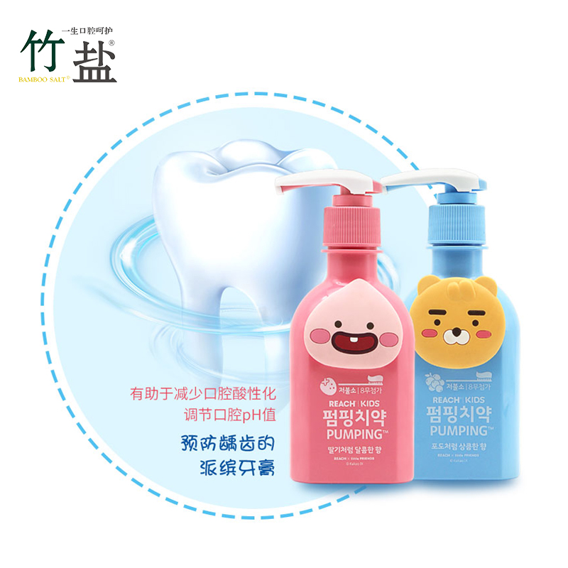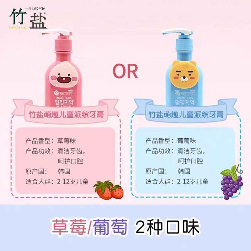 韩国竹盐萌趣儿童派缤按压式含氟牙膏160g