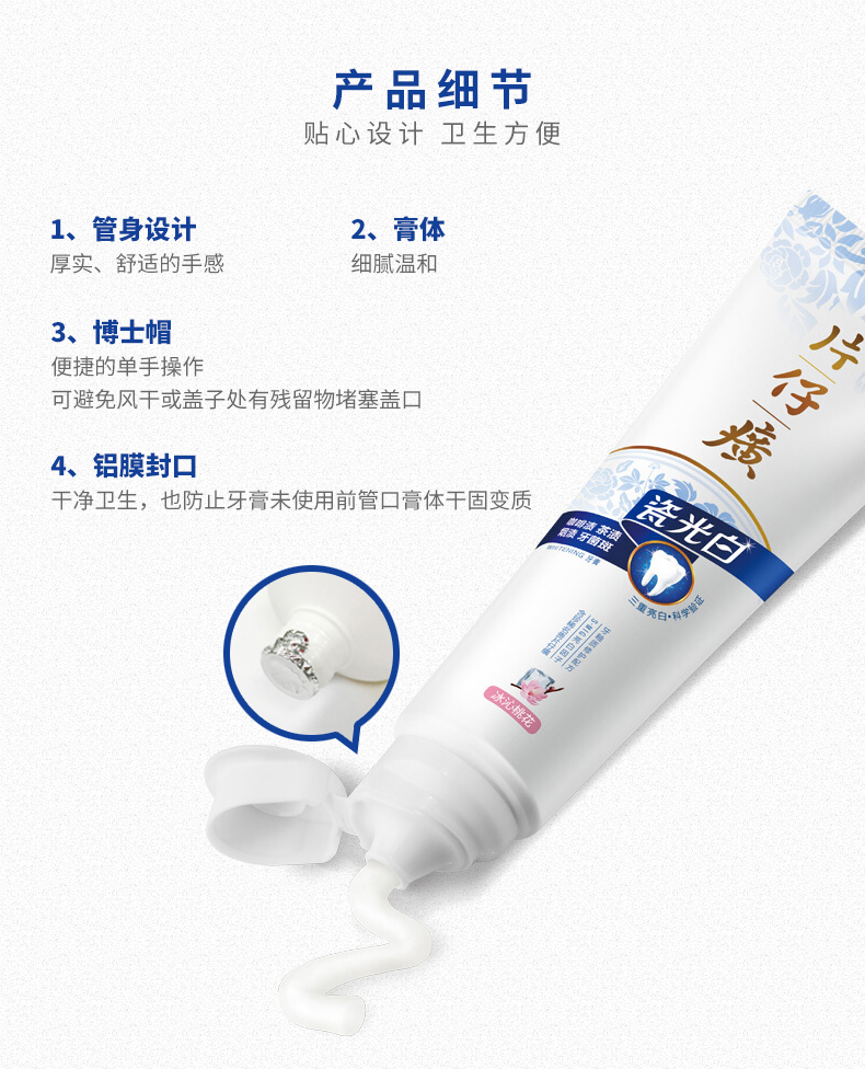 优选丨片仔癀瓷光白牙膏(冰沁桃花)155g(2026年8月到期)