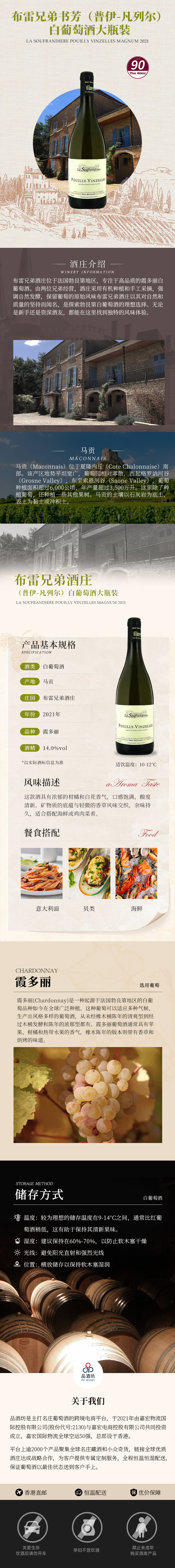 2021 La Soufrandiere Pouilly Vinzelles Magnum 布雷兄弟书芳(普伊-凡列尔)白葡萄酒大瓶装