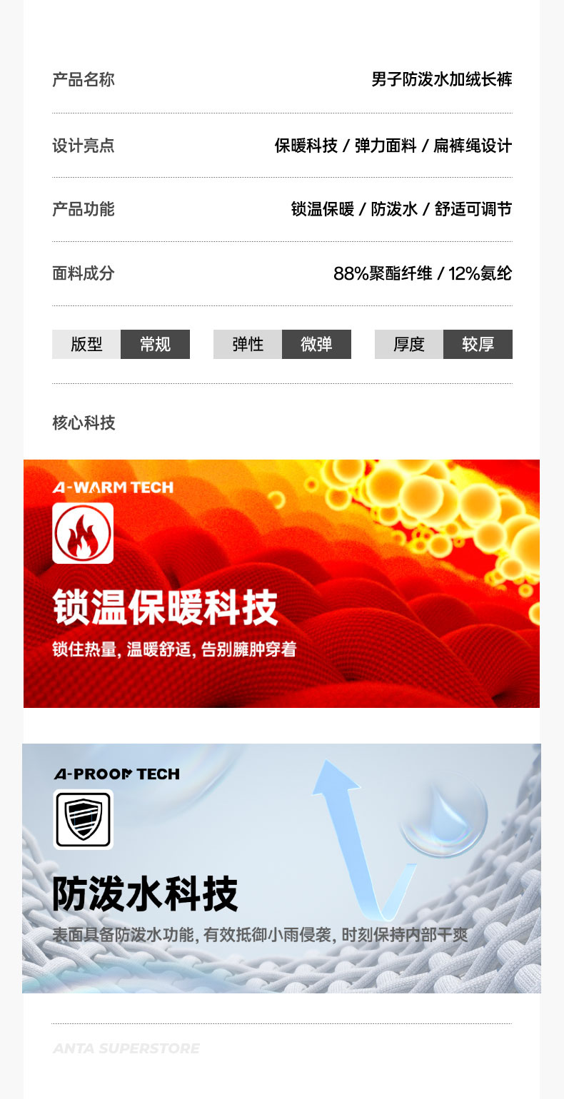 超级安踏防水加绒长裤男子秋冬保暖运动裤休闲通勤裤子152547505U