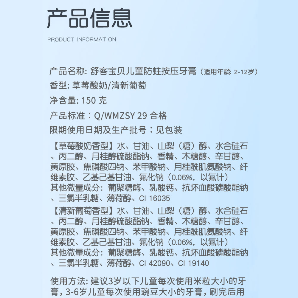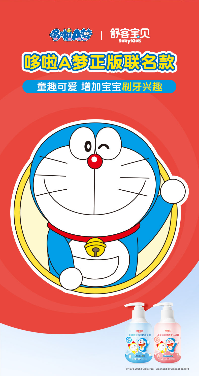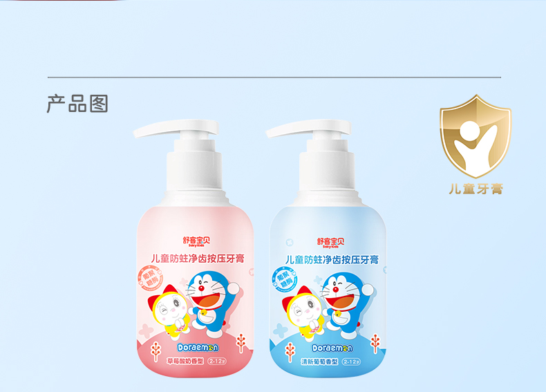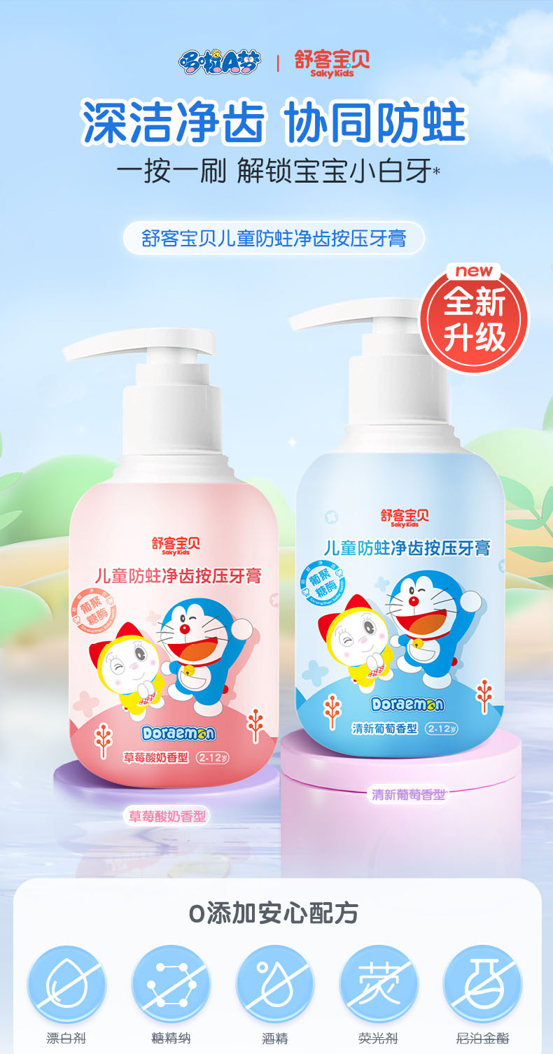 【哆啦A梦联名版】舒客宝贝儿童150G按压牙膏含氟2-6-12岁换牙期