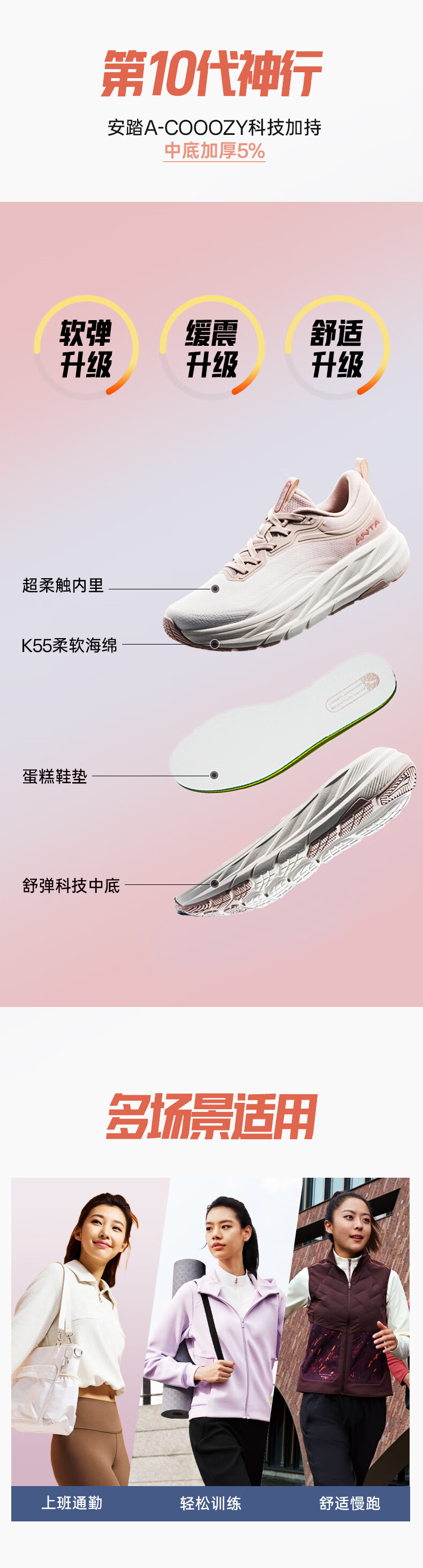 安踏神行10丨女轻便休闲训练鞋2025春季新款减震运动鞋122517718