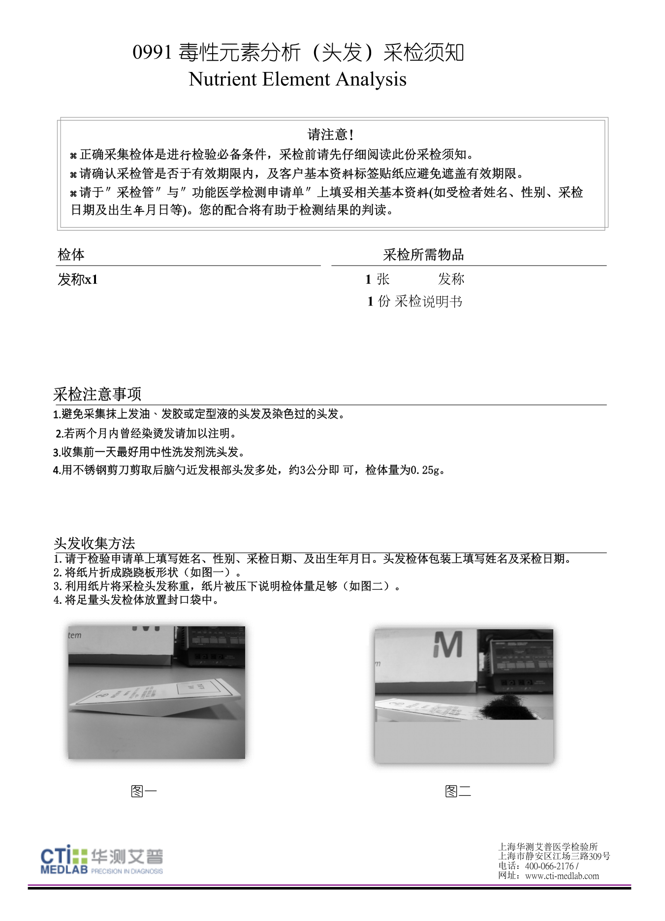 【检测】毒性元素分析(头发)华测0991