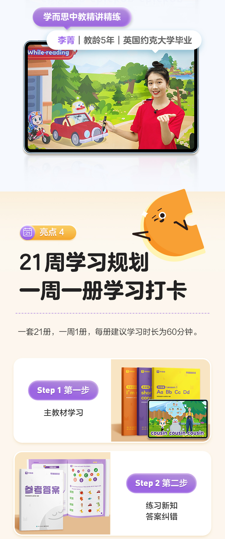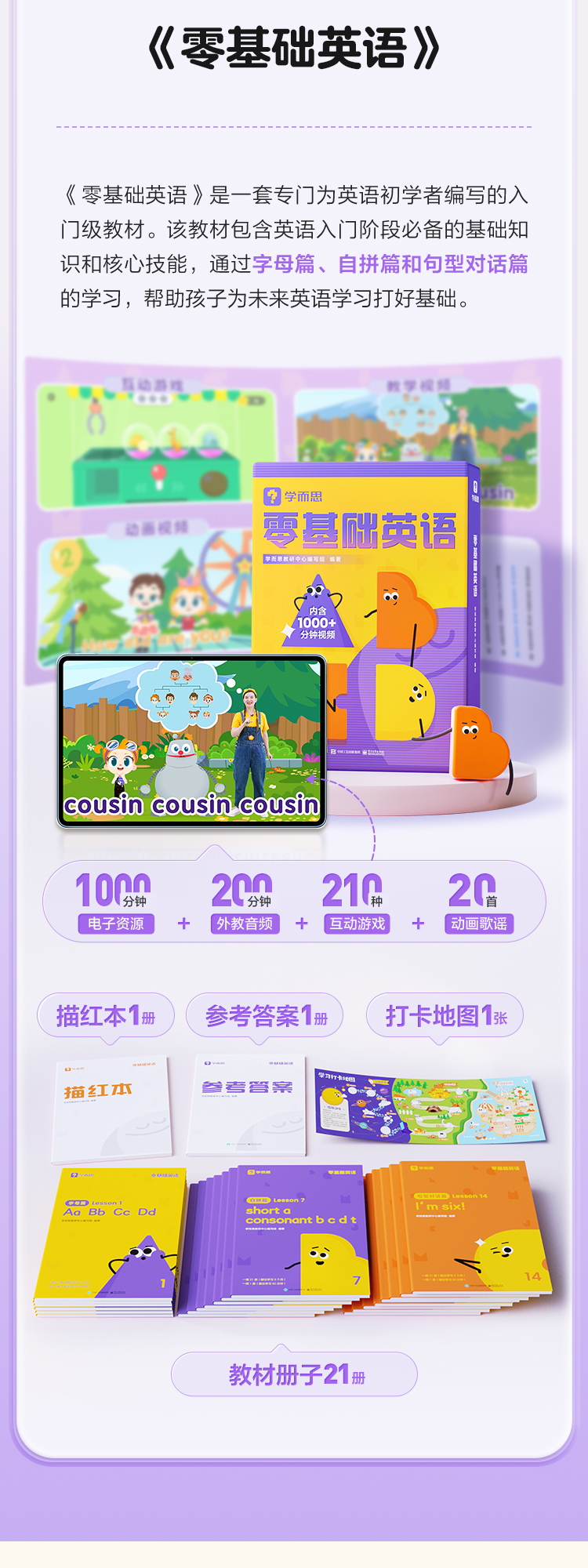 【学而思零基础英语】高频轻量每周一册共21周,科学学习规划;25册纸质资源配1000+分钟数字丰富资源;