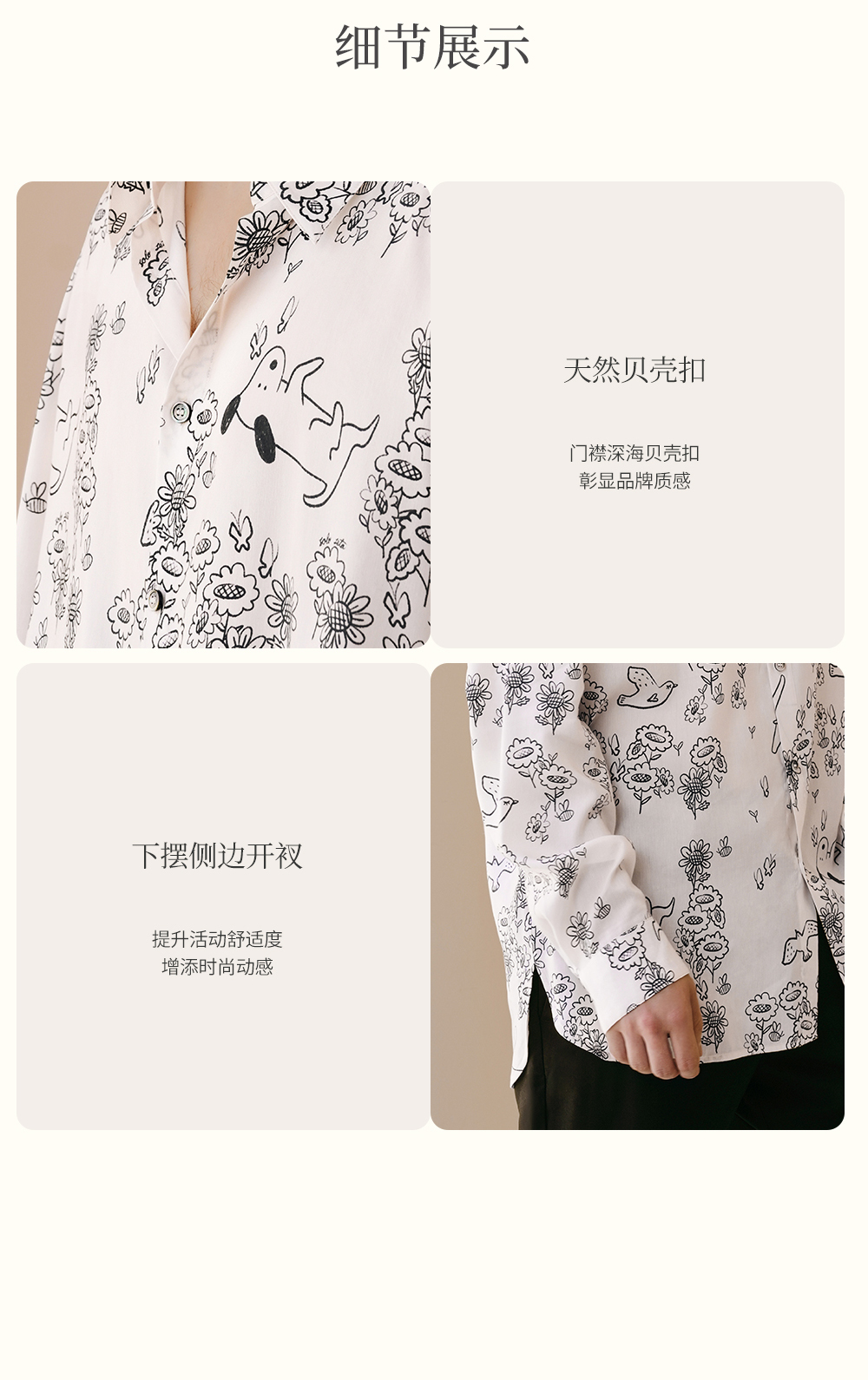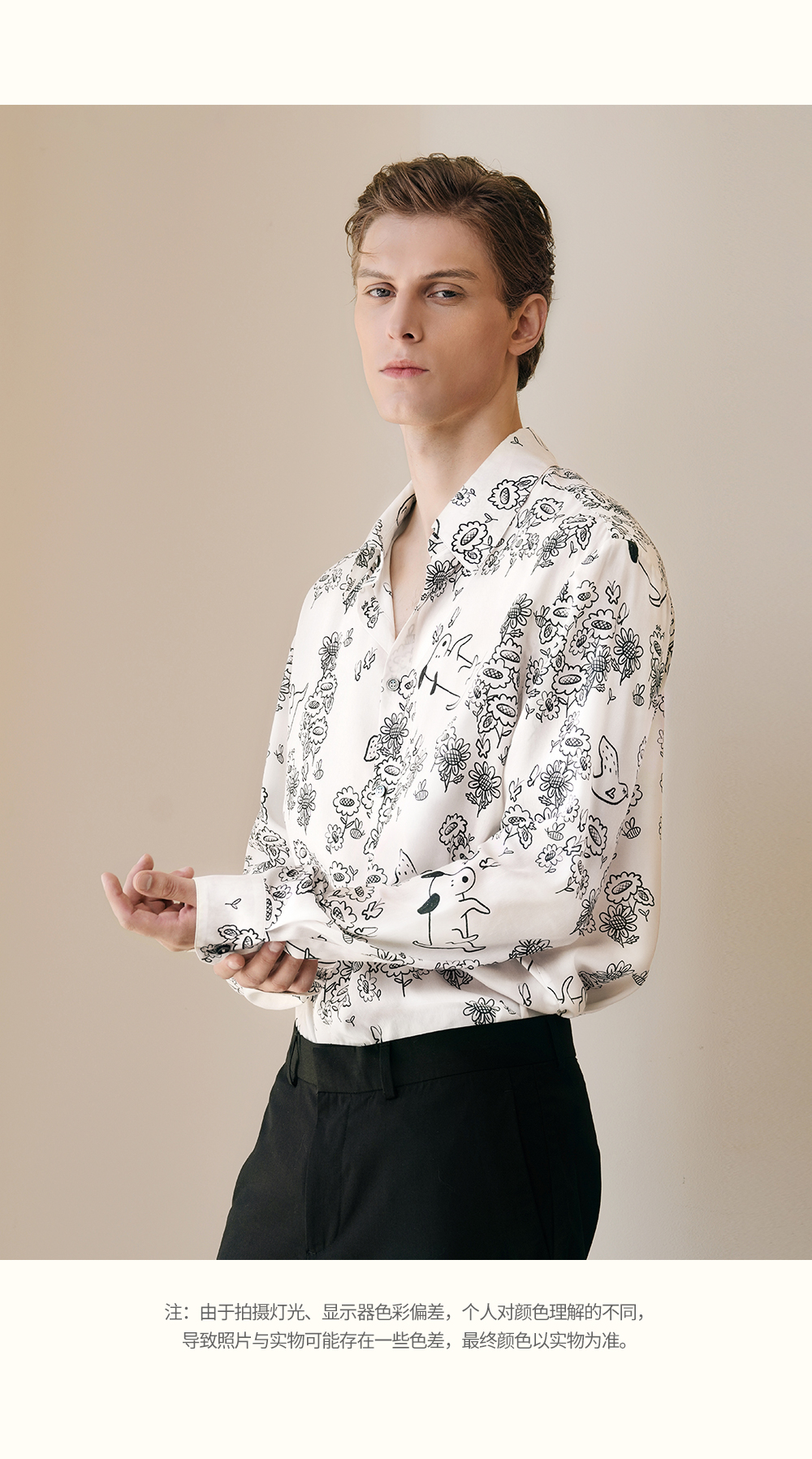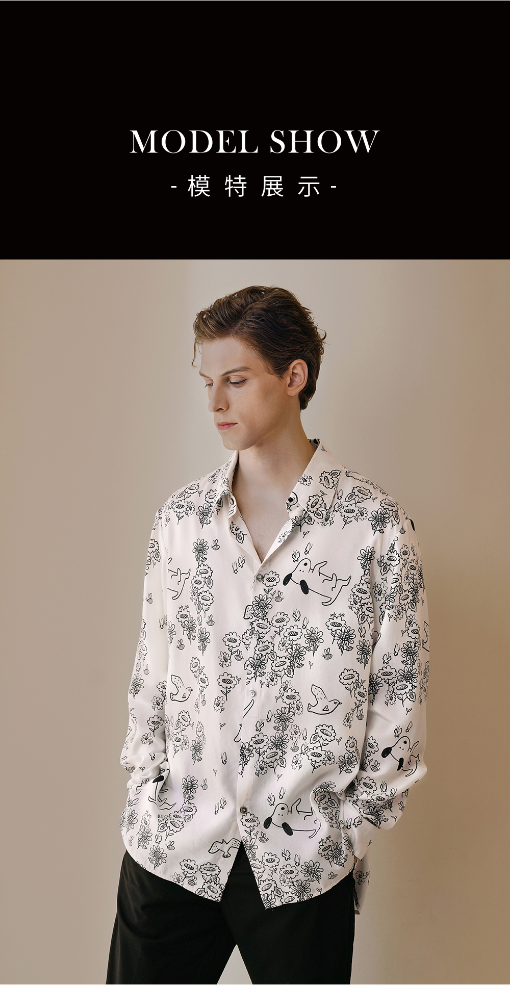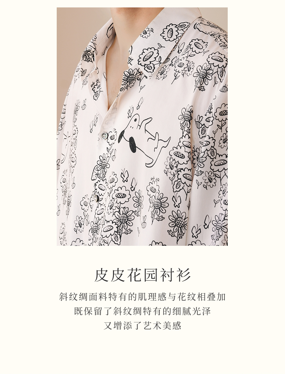 Solo seta男士真丝黑白印花衬衫桑蚕丝斜纹绸可外穿睡衣上装春夏