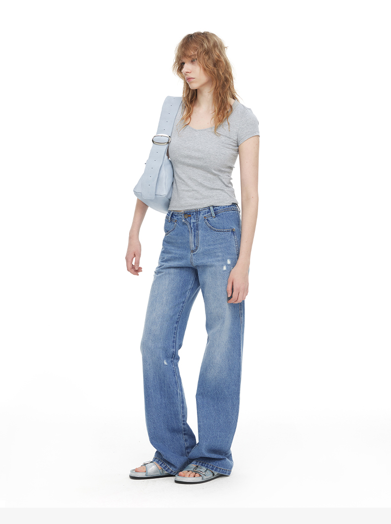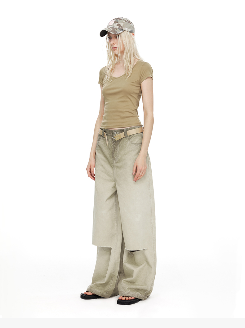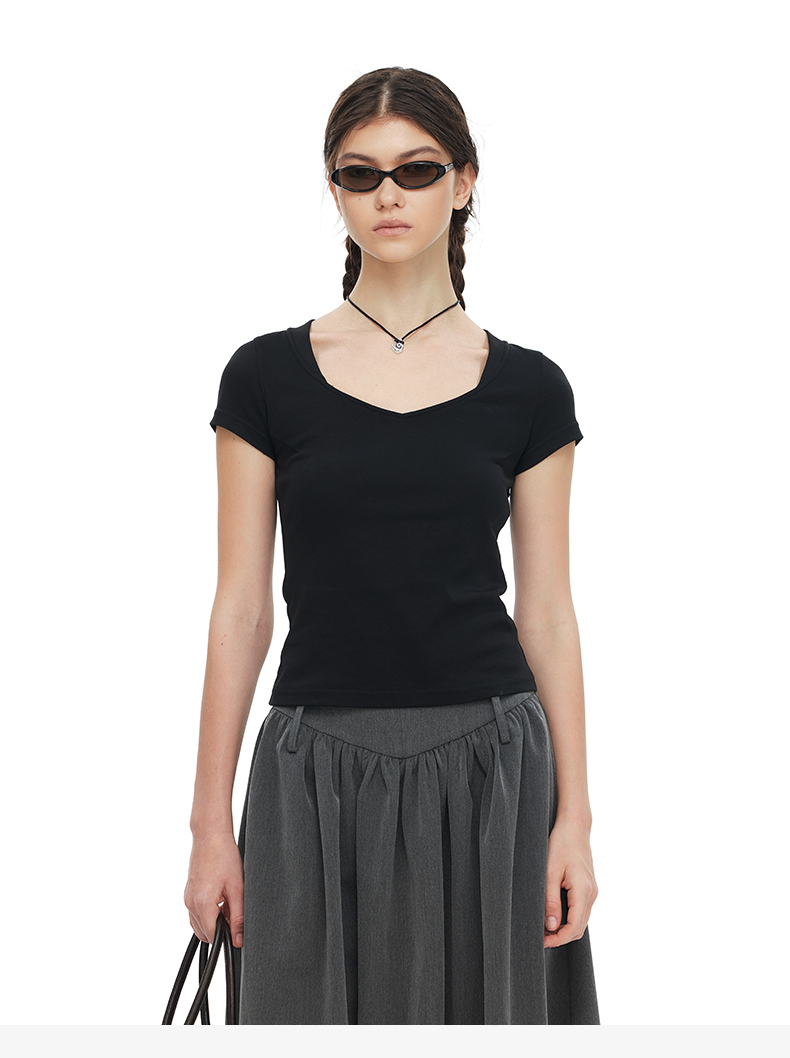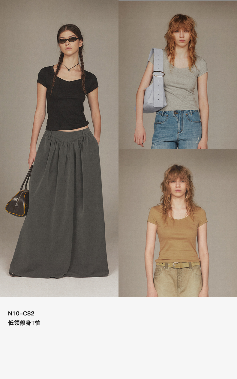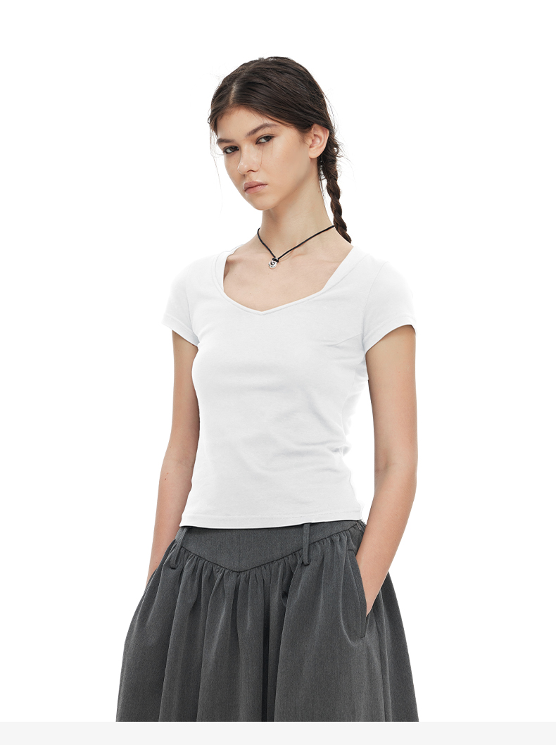 NUTH 凉感液氨纯棉低领修身显瘦短袖t恤女