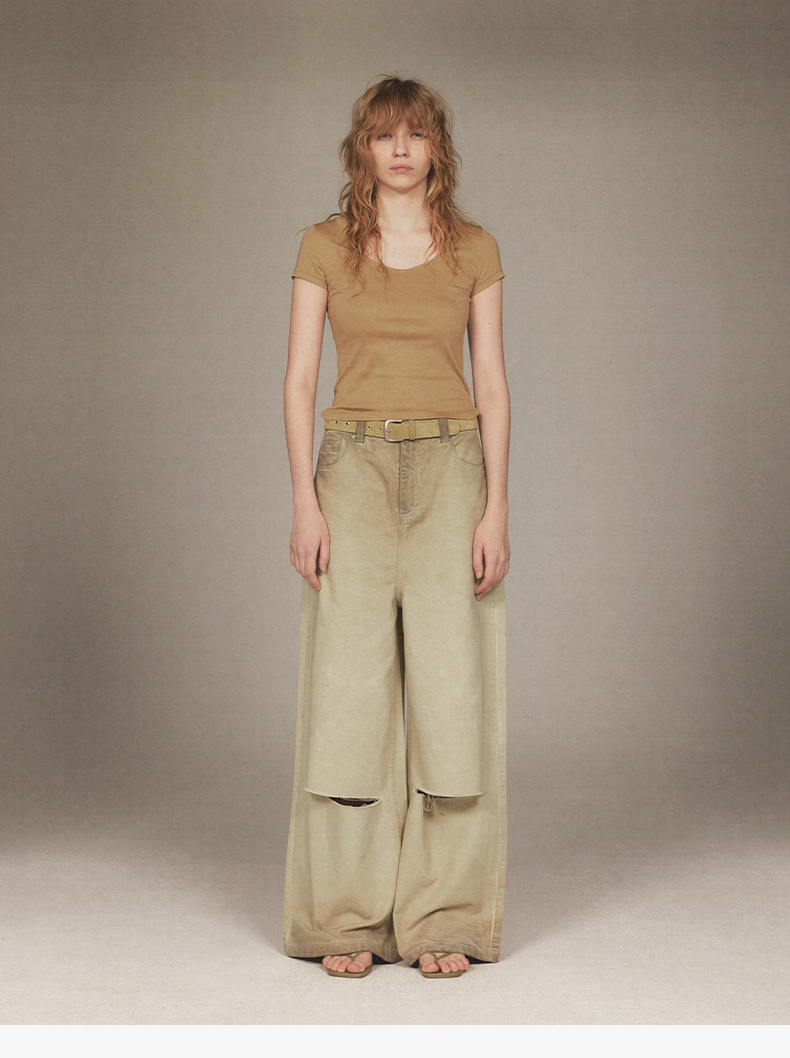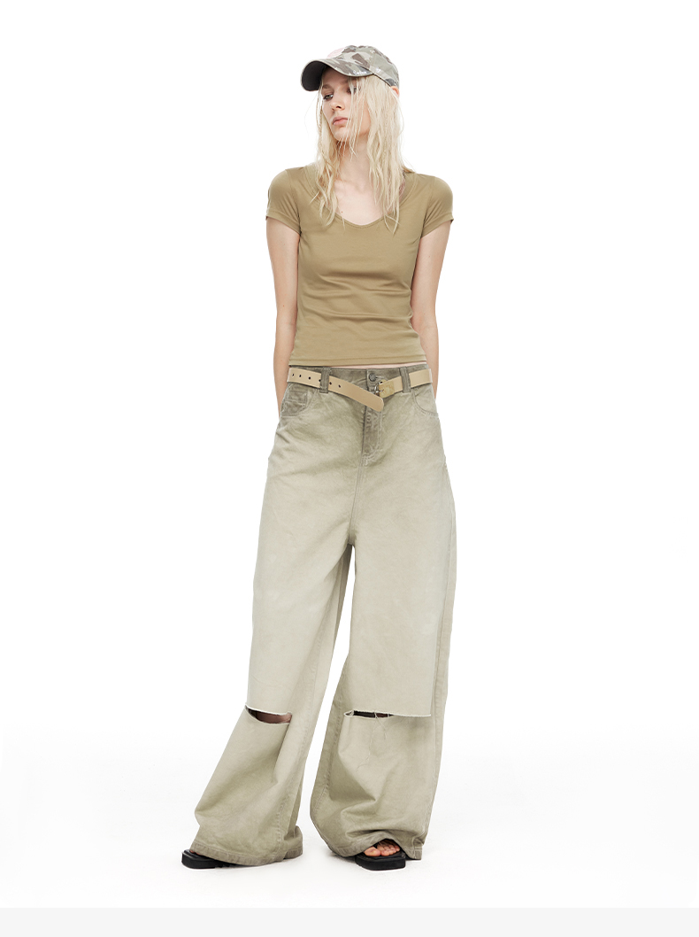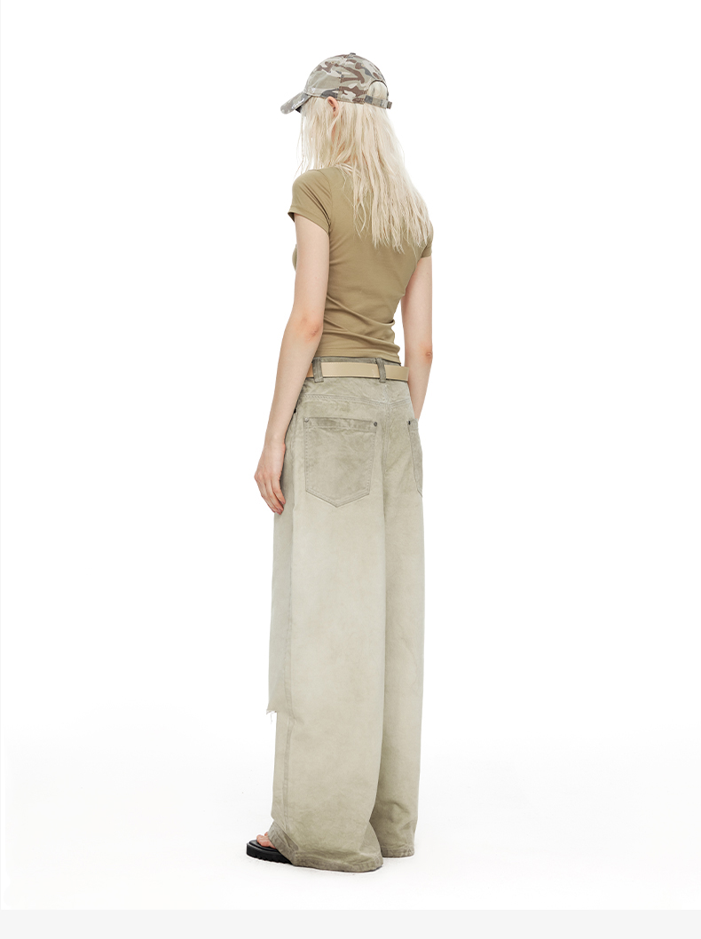 NUTH棕黑色斑驳做旧复古直筒工装裤女