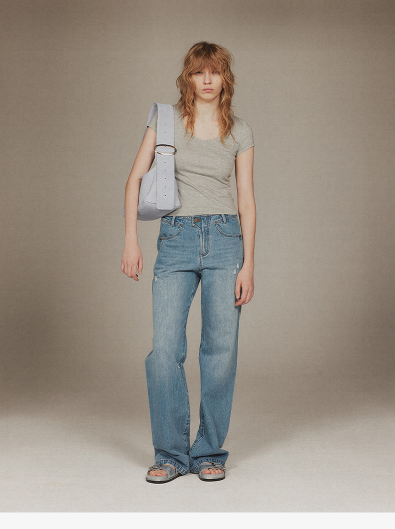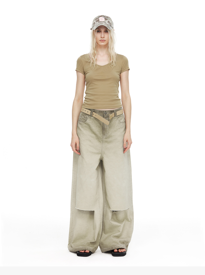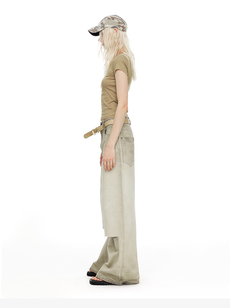 NUTH“画中少女”复古做旧牛仔裙不规则下摆半身裙
