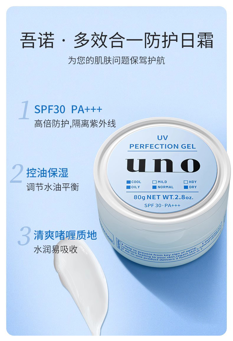 【保税仓】Shiseido资生堂UNO完效男士抗UV醒肤冻霜80g